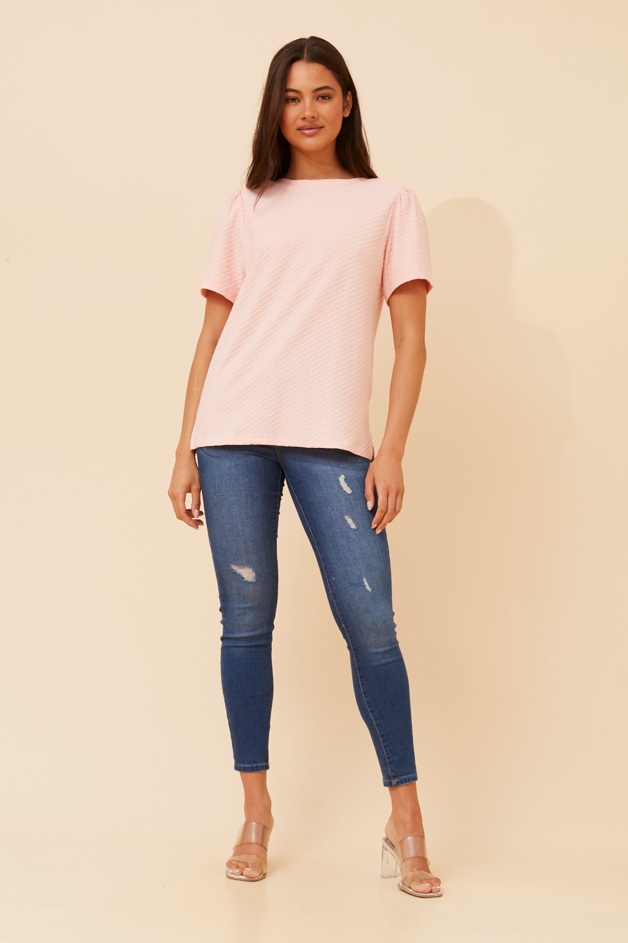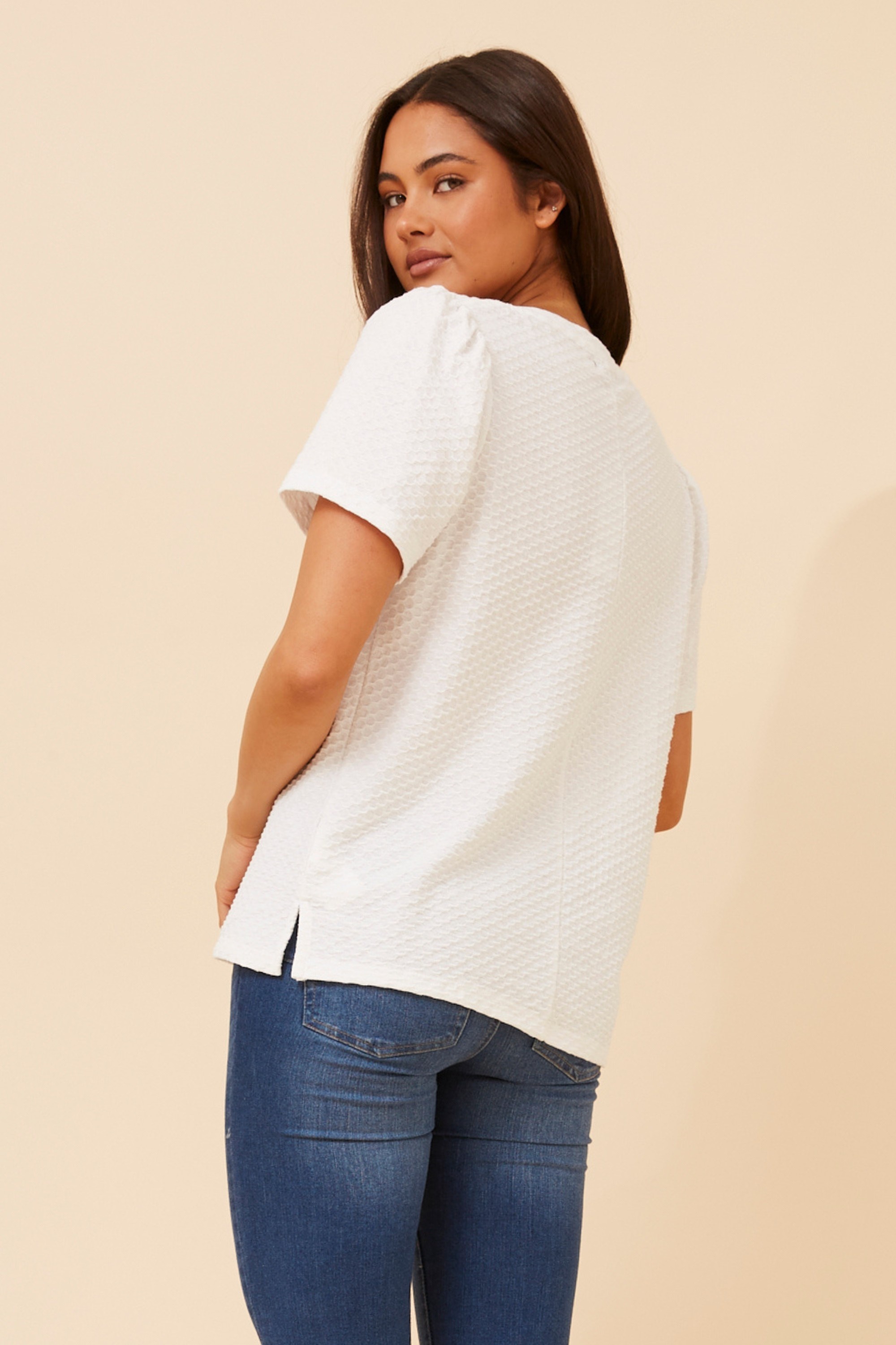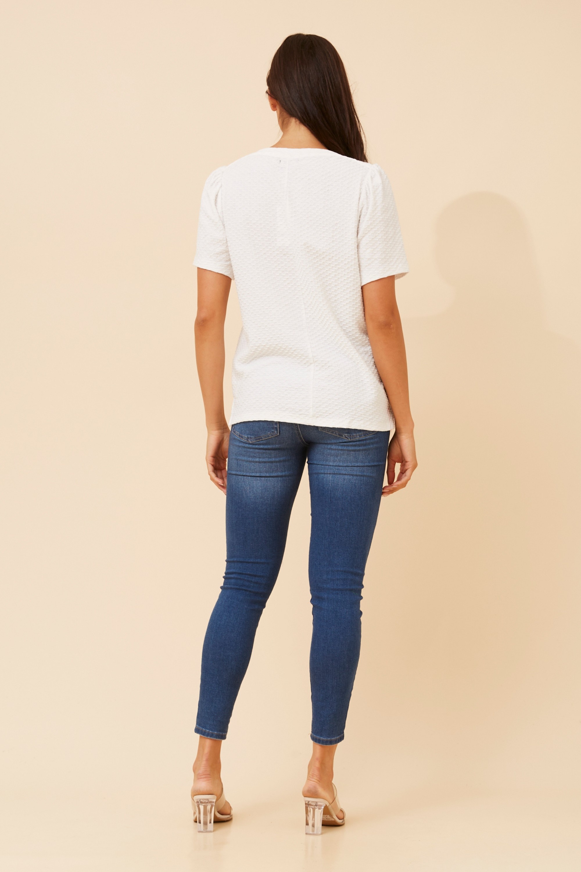 The Bionda T-shirt is a wardrobe essential with a twist. Its subtle embossed detailing adds texture and interest to a classic silhouette, making it easy to dress up with tailored pants or down with denim for effortless everyday style.