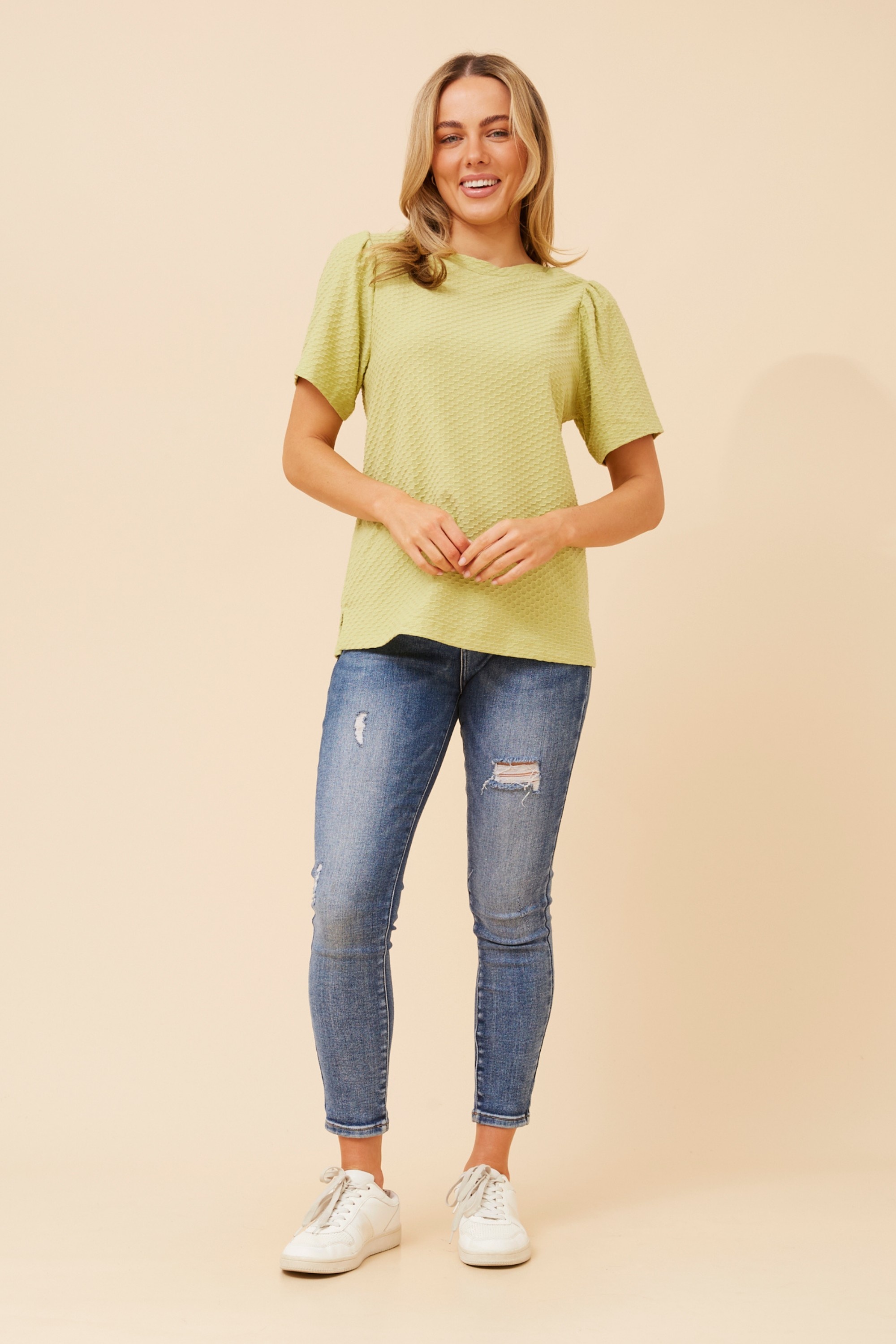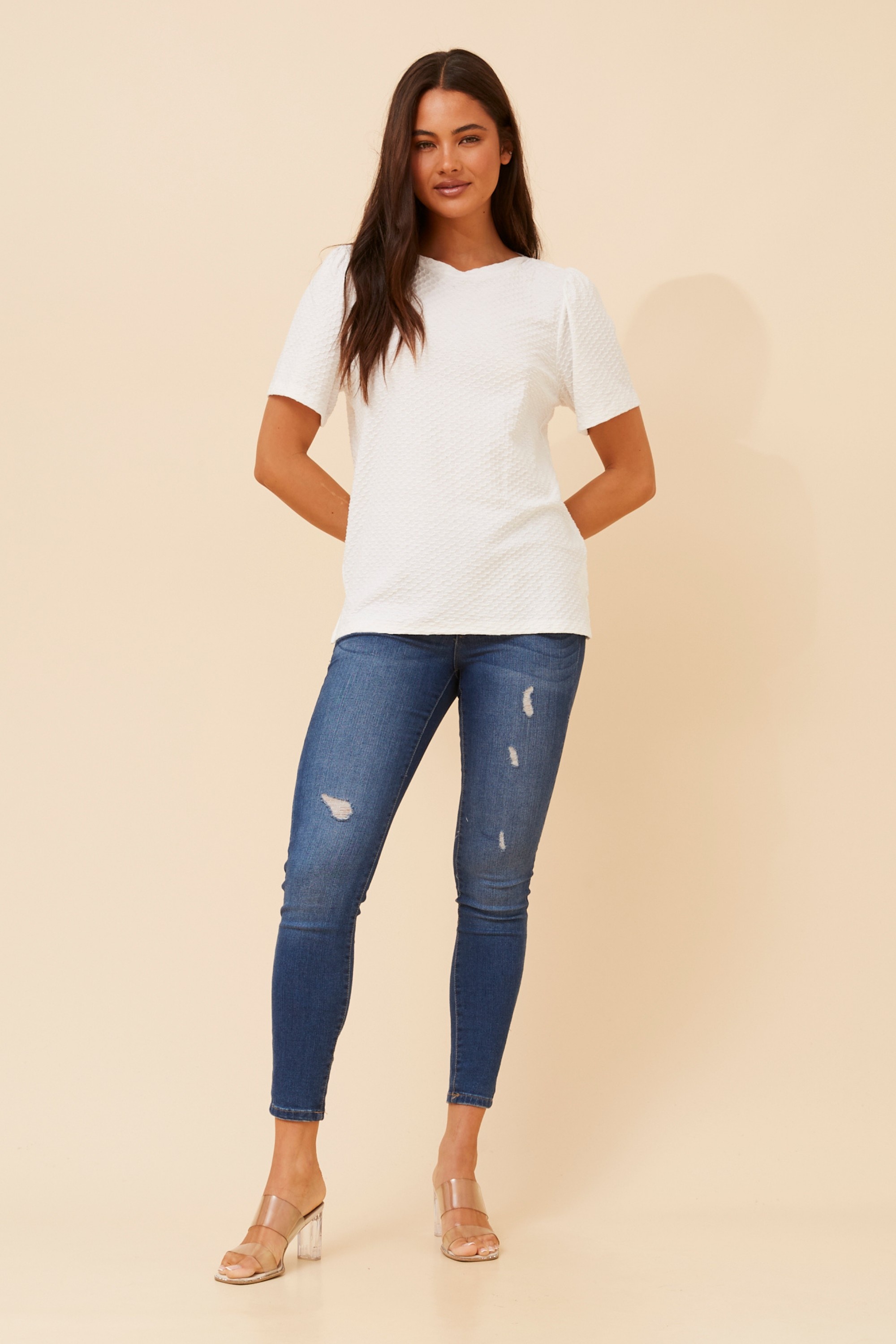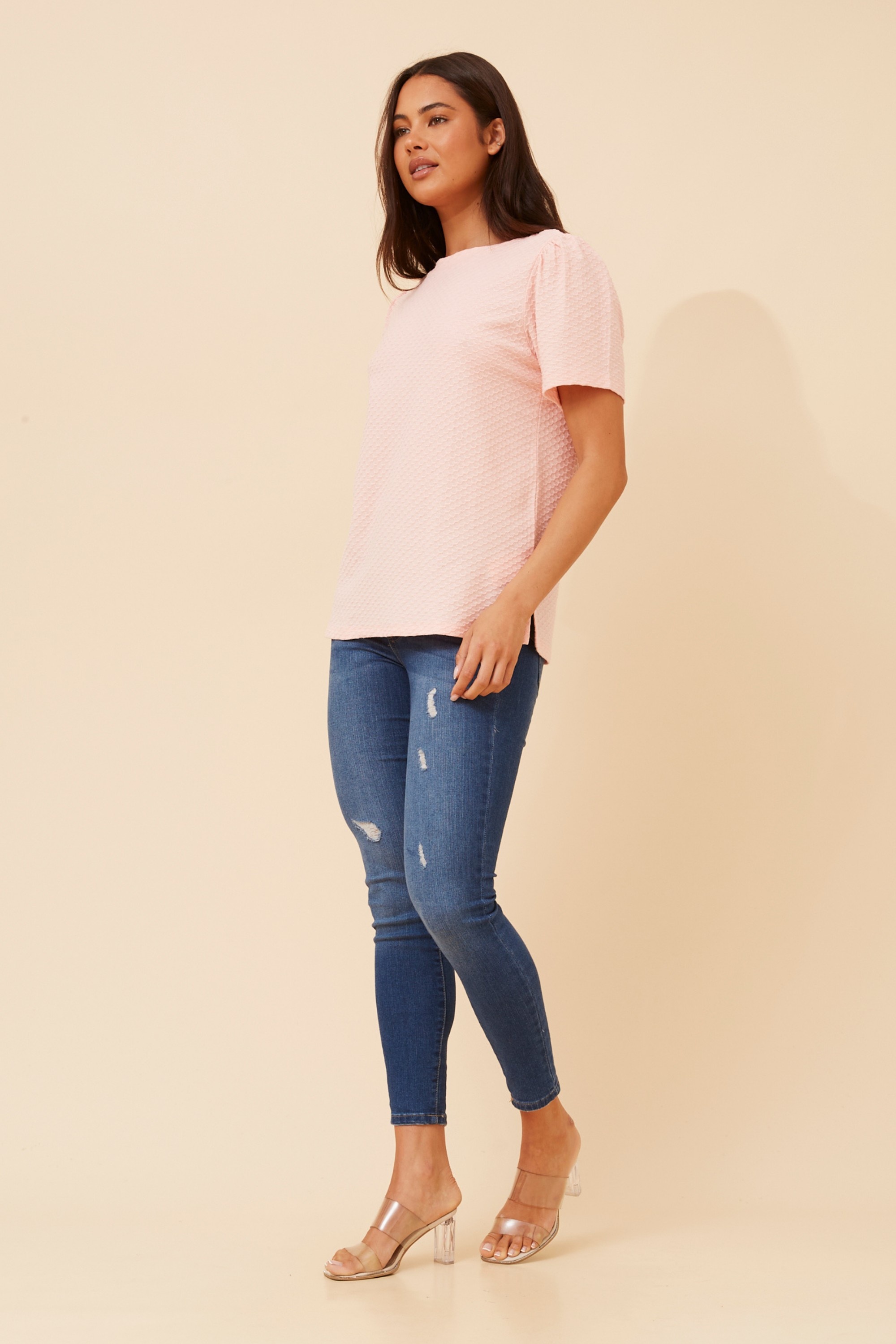 The Bionda T-shirt is a wardrobe essential with a twist. Its subtle embossed detailing adds texture and interest to a classic silhouette, making it easy to dress up with tailored pants or down with denim for effortless everyday style.