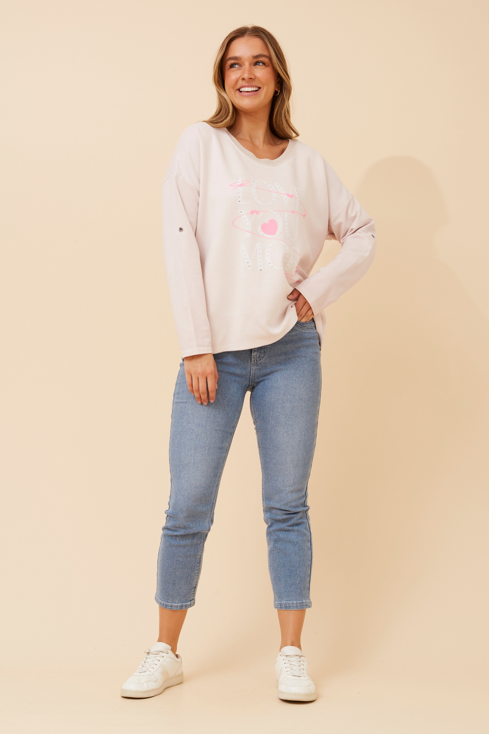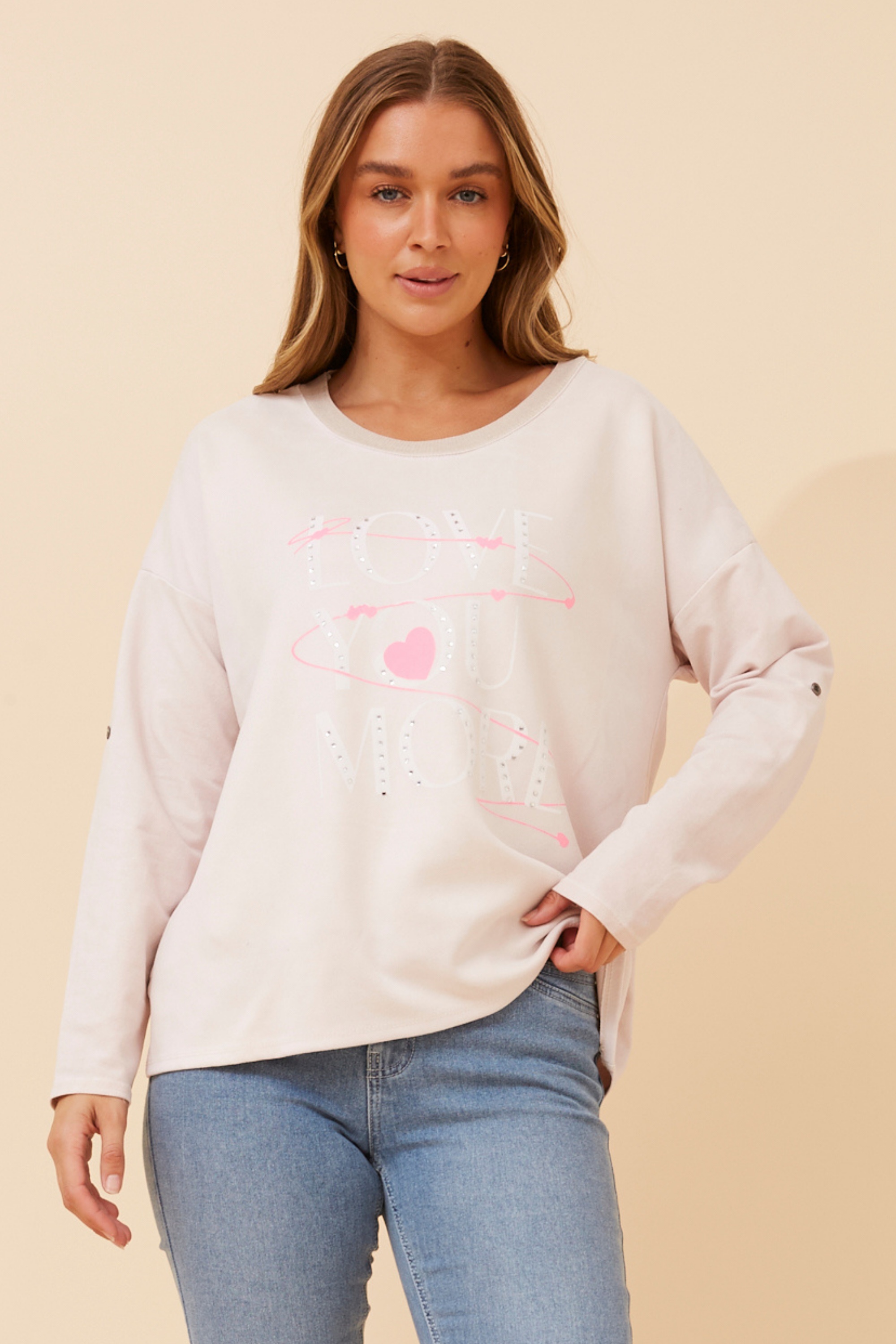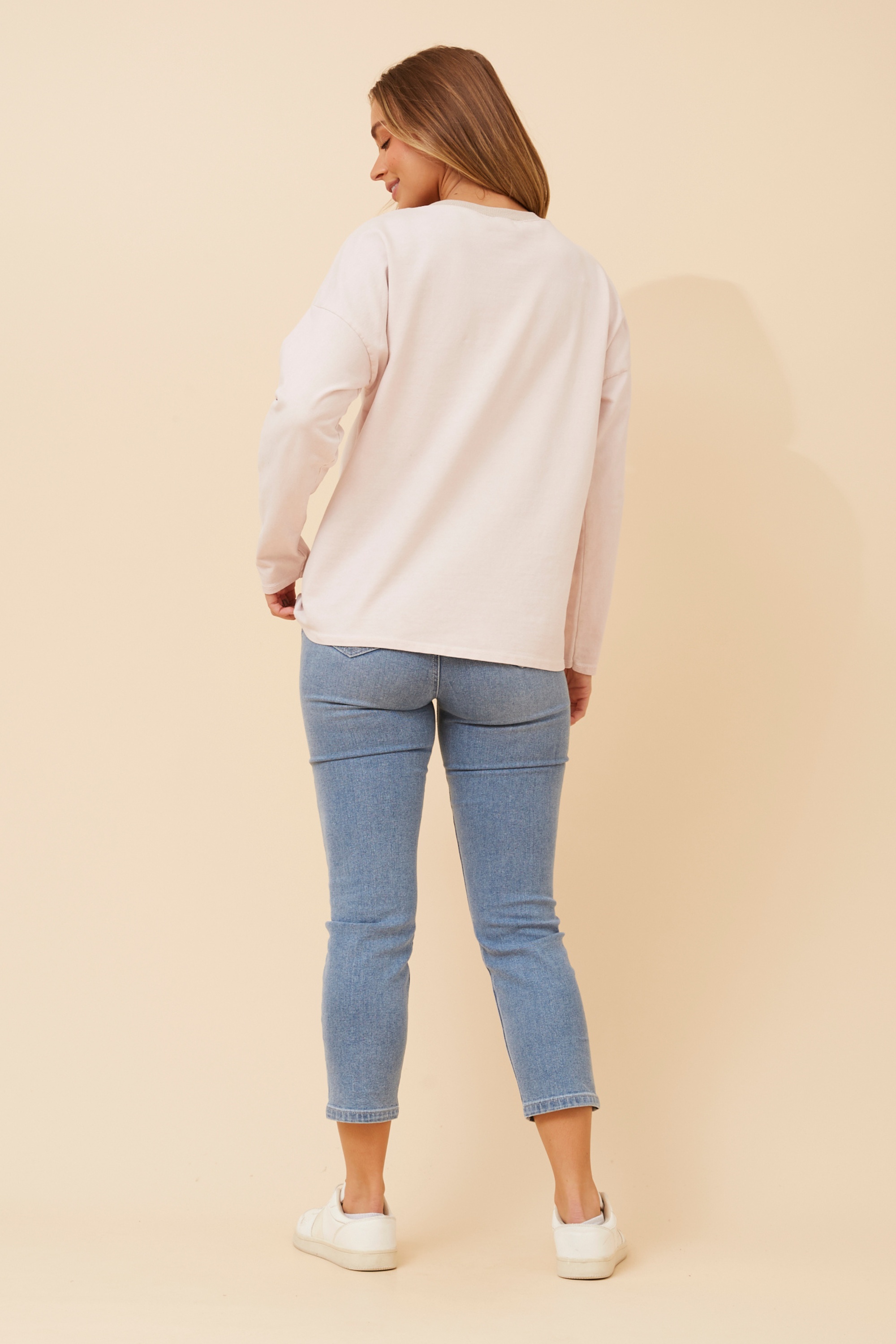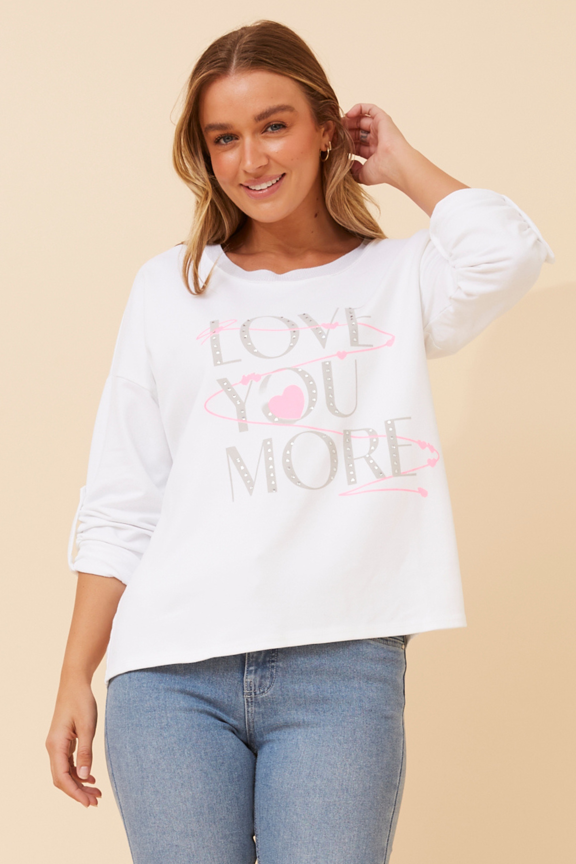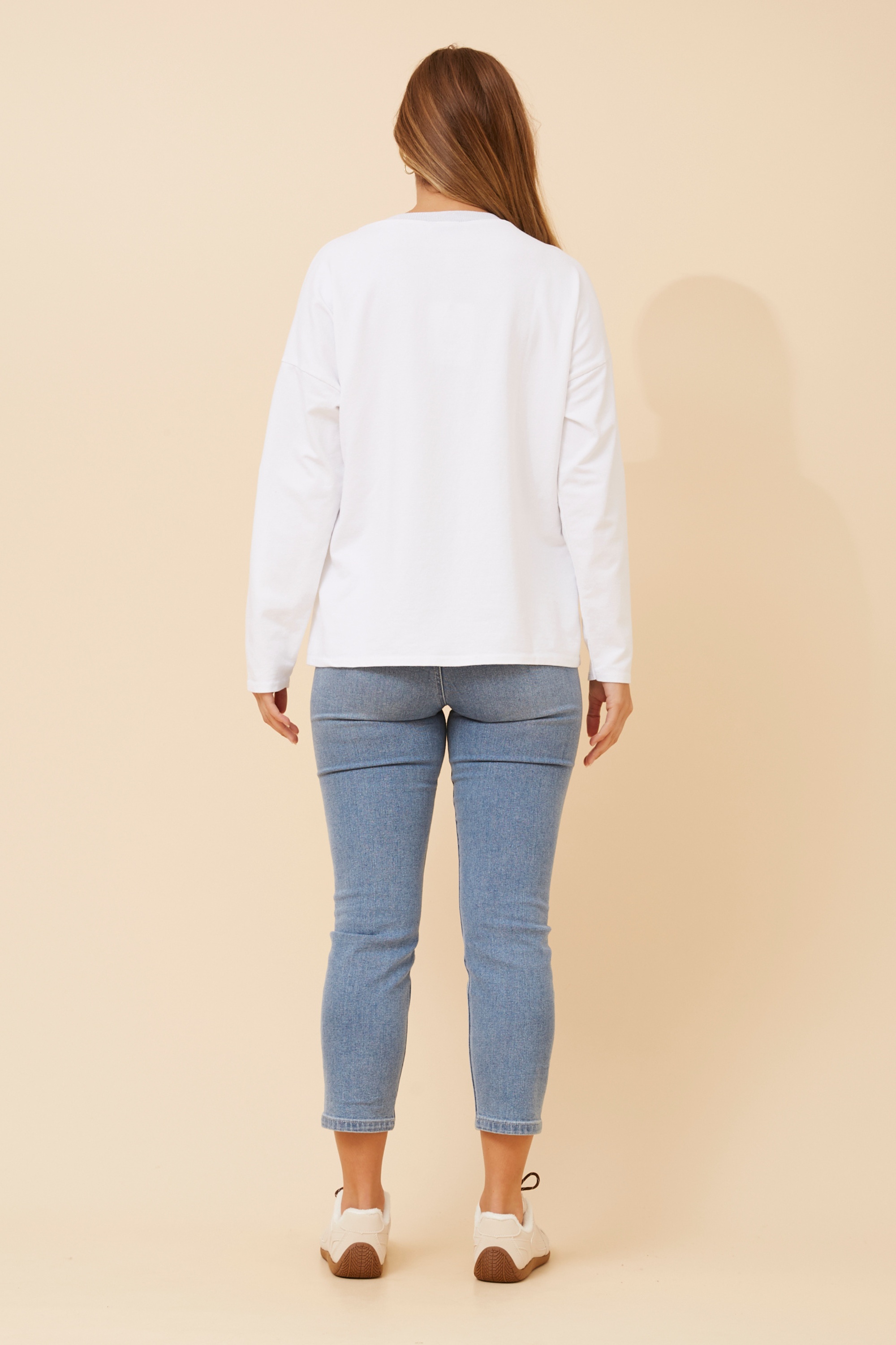 - Long roll-up sleeves with button detail