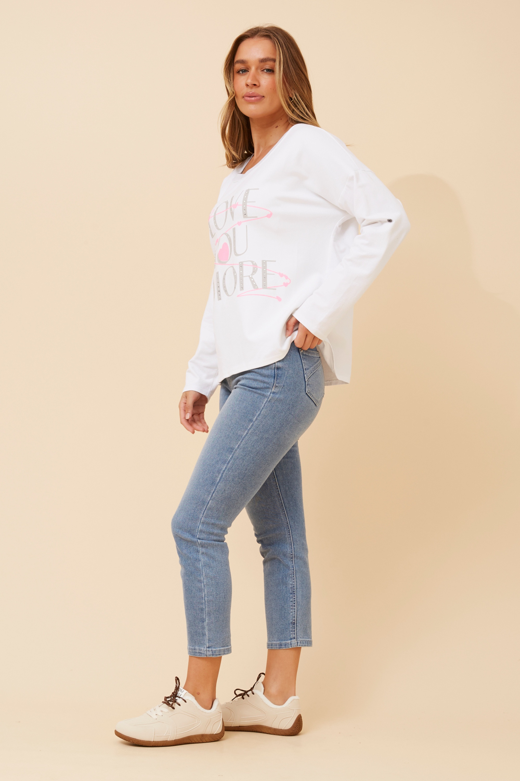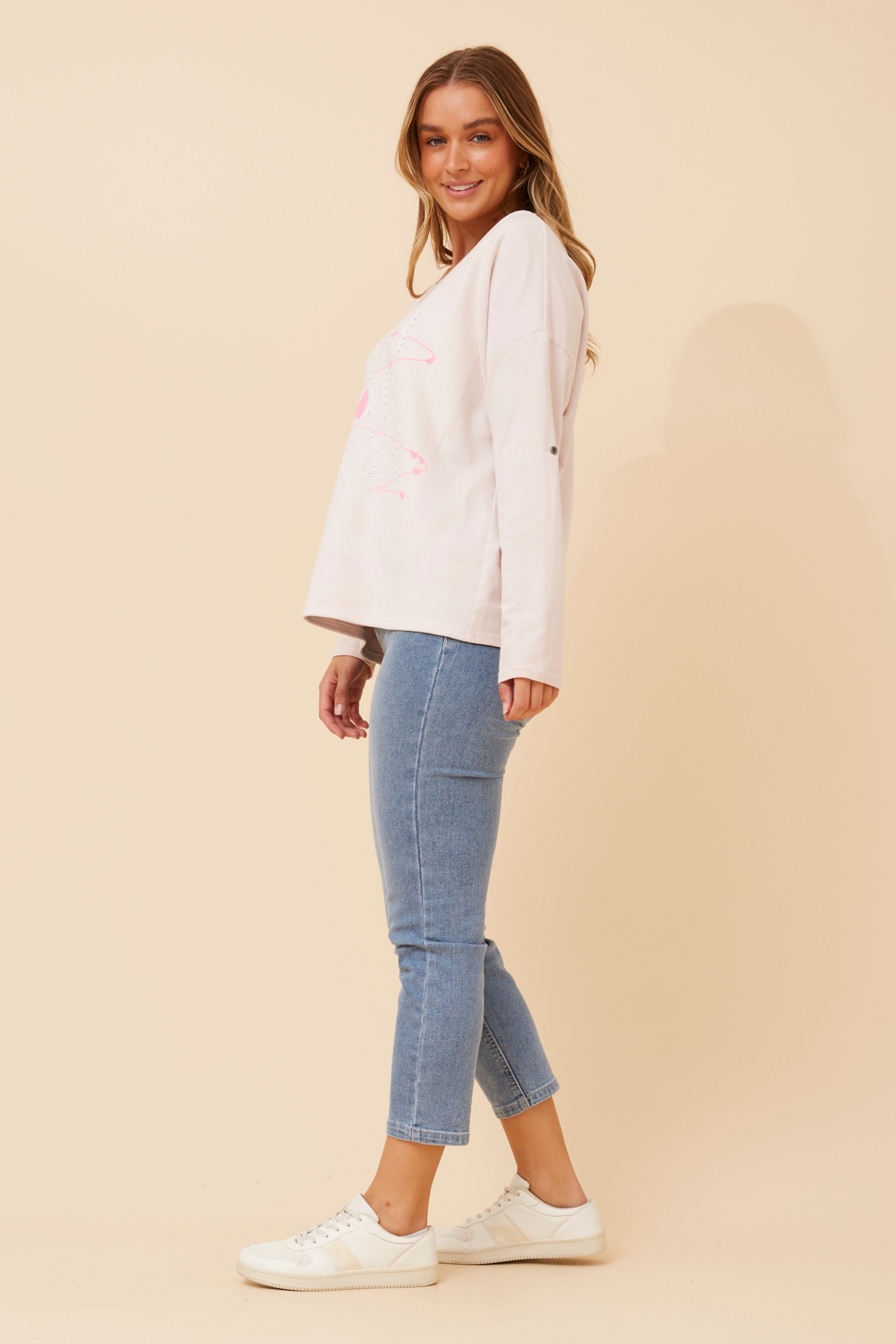 Step into effortless style with the graphic top, perfect for casual outing or weekend plans. Pair it with denim and flats for a laid-back look or style it with a skirt and sandals for a more dressed-up finish.