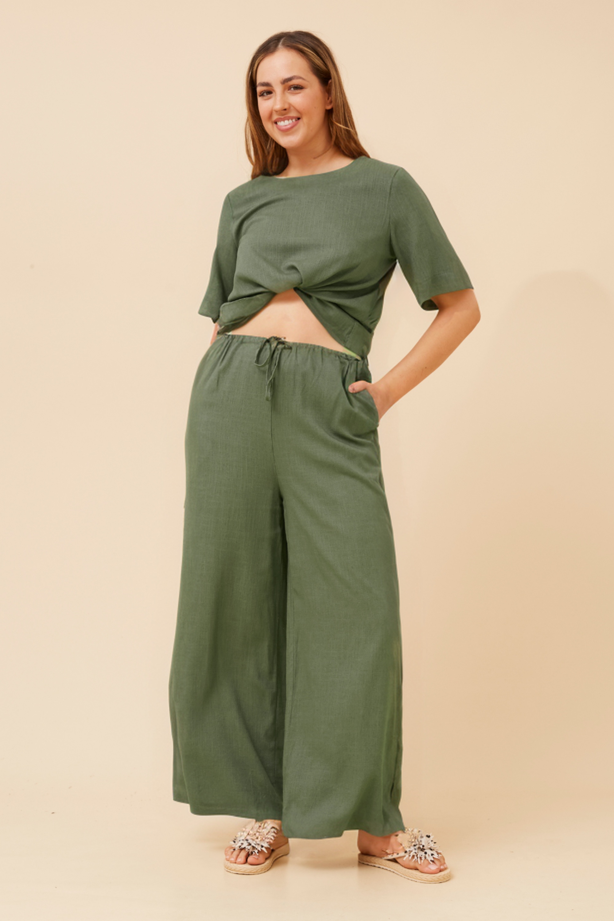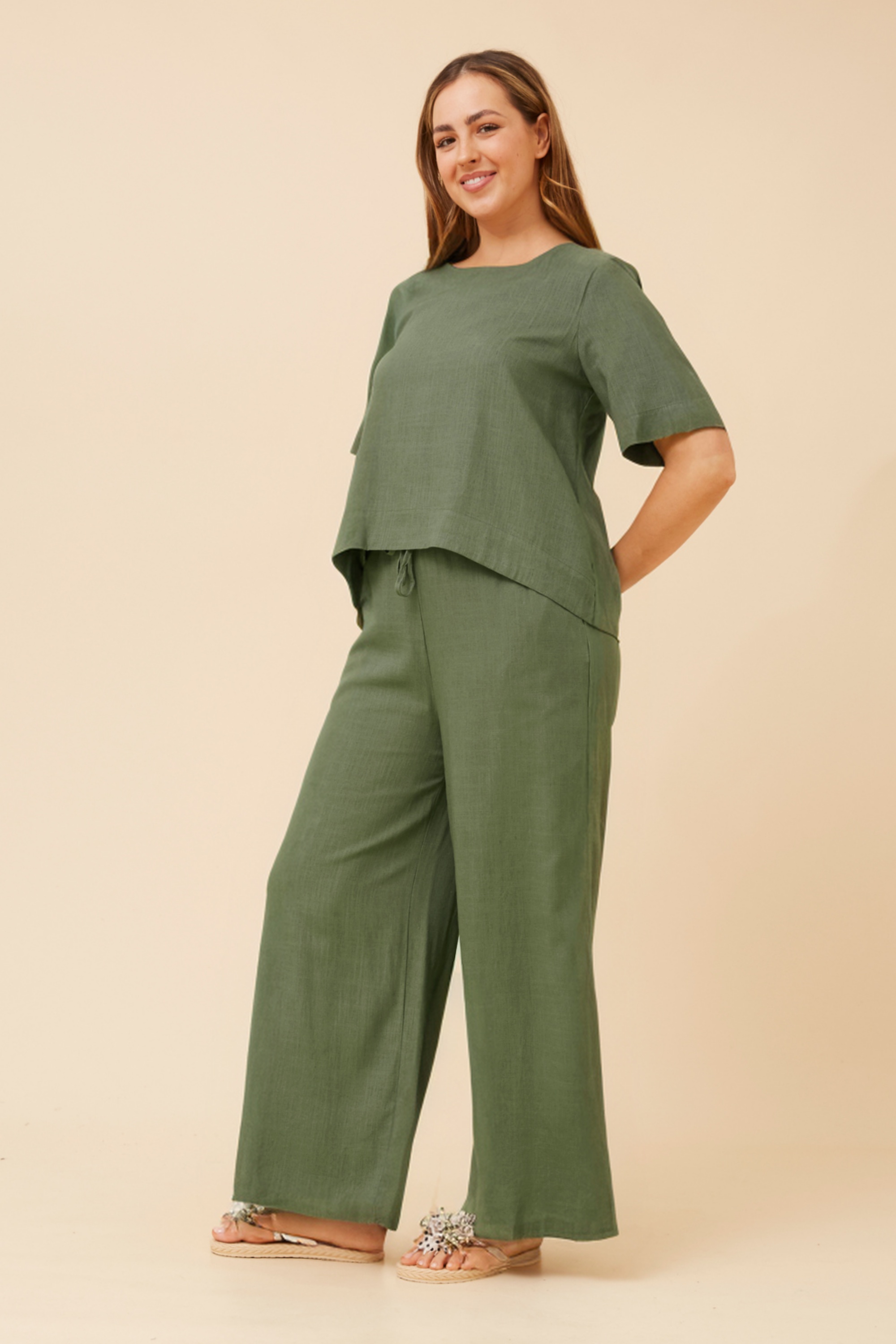 - Wide-leg pants