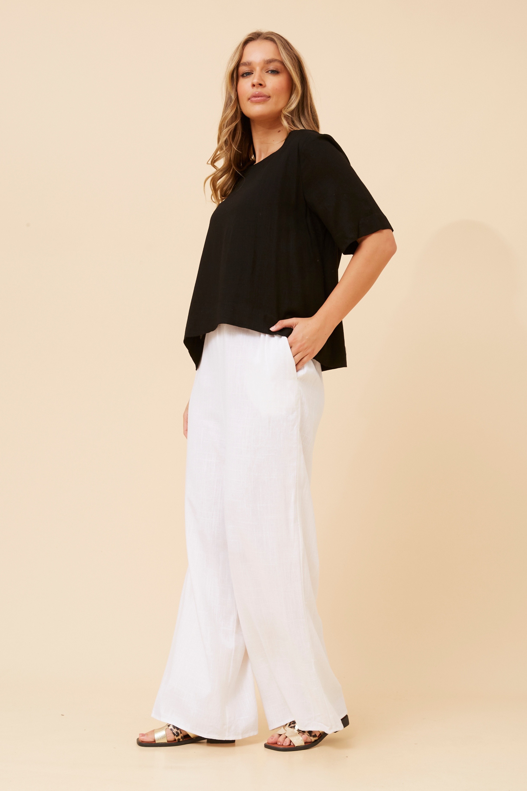 The Donny pants are super relaxed and easy to wear, perfect for casual days or chill weekends. Pair them with a tucked-in top and flats for a simple daytime look, or switch to heels and a statement bag to dress it up a bit.