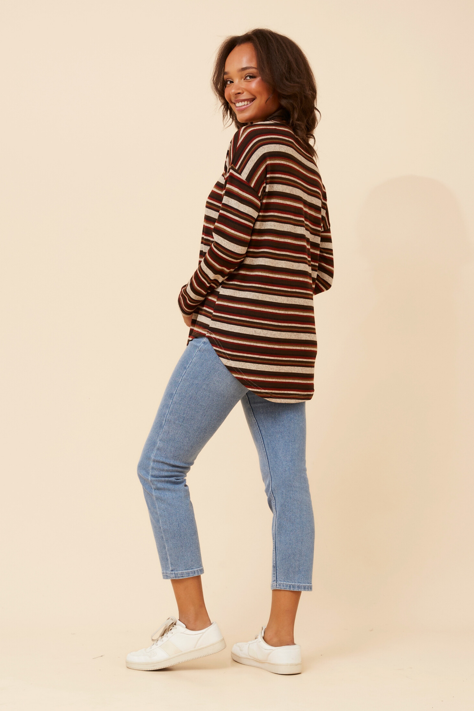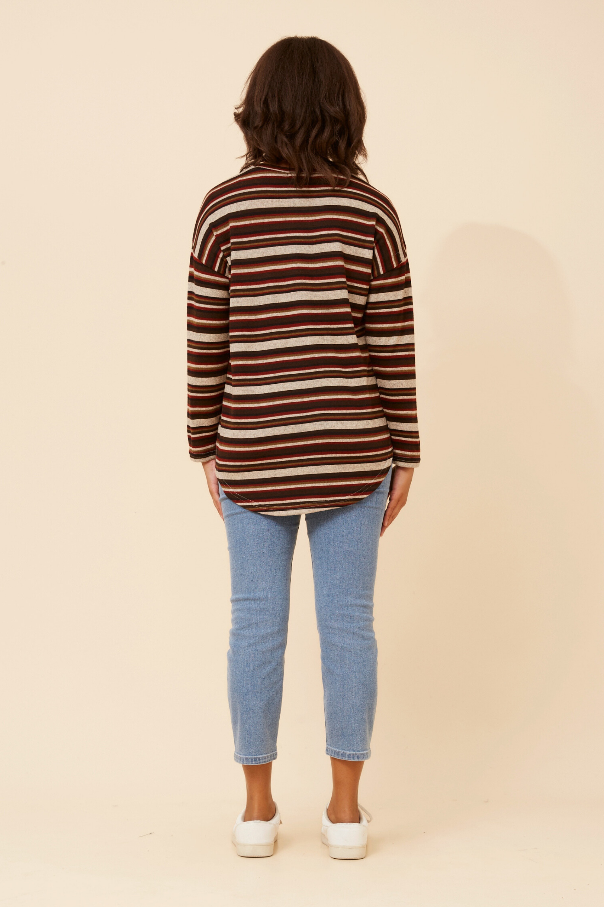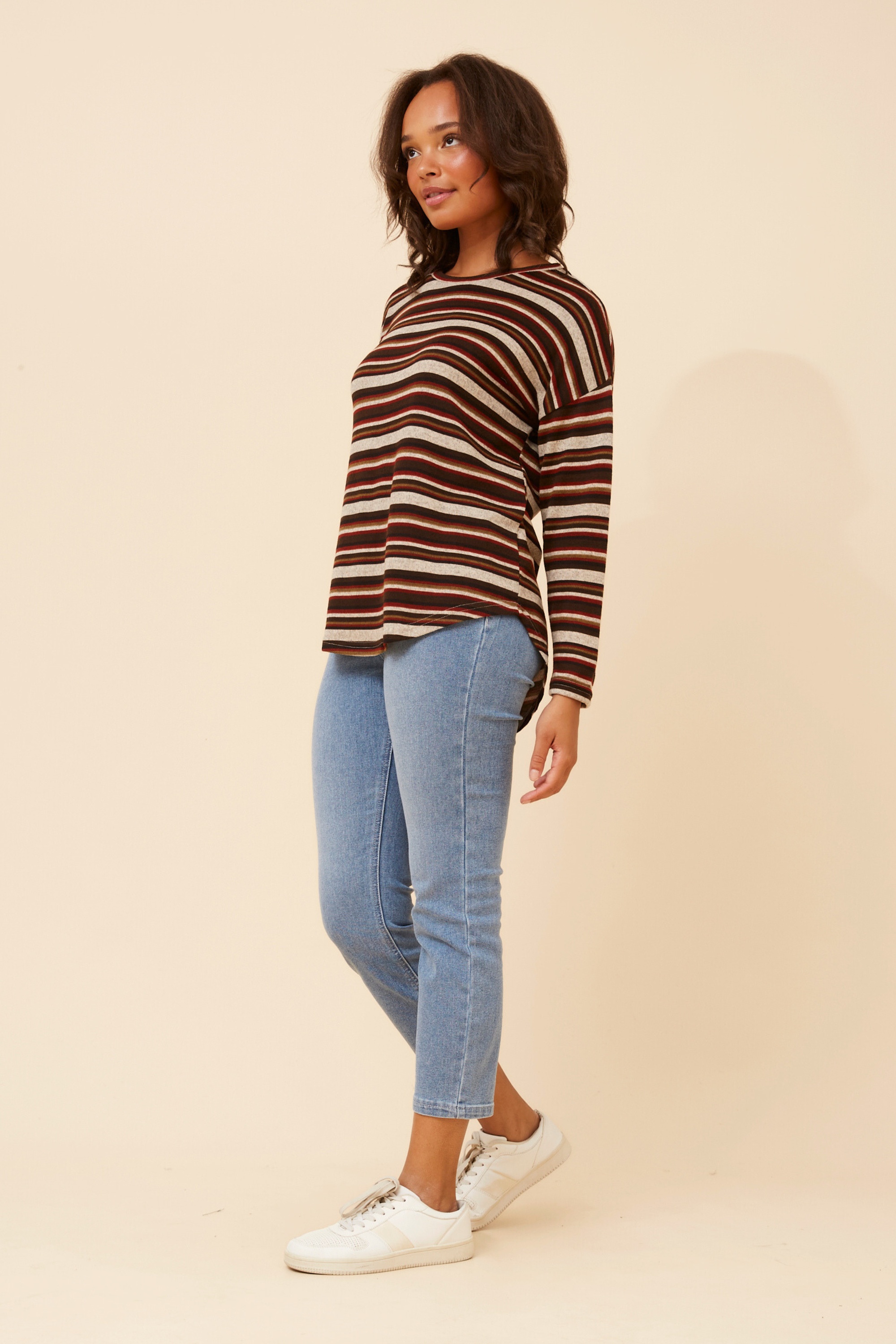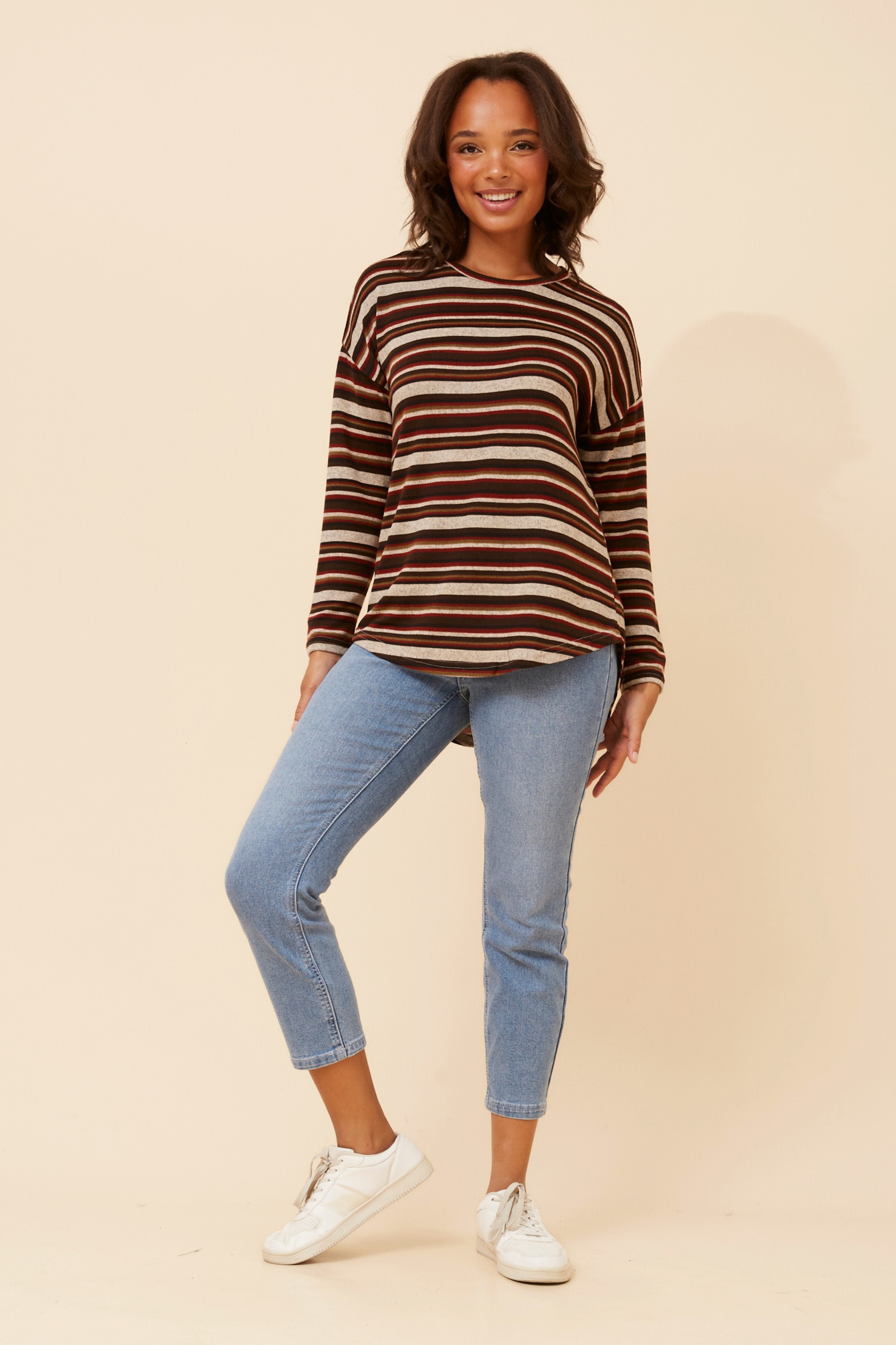 For an effortless and relaxed everyday look, pair the Eva top with your favourite jeans and runners. The top is also easy to dress up with black skinny pants and ankle boots for a chic day out look!