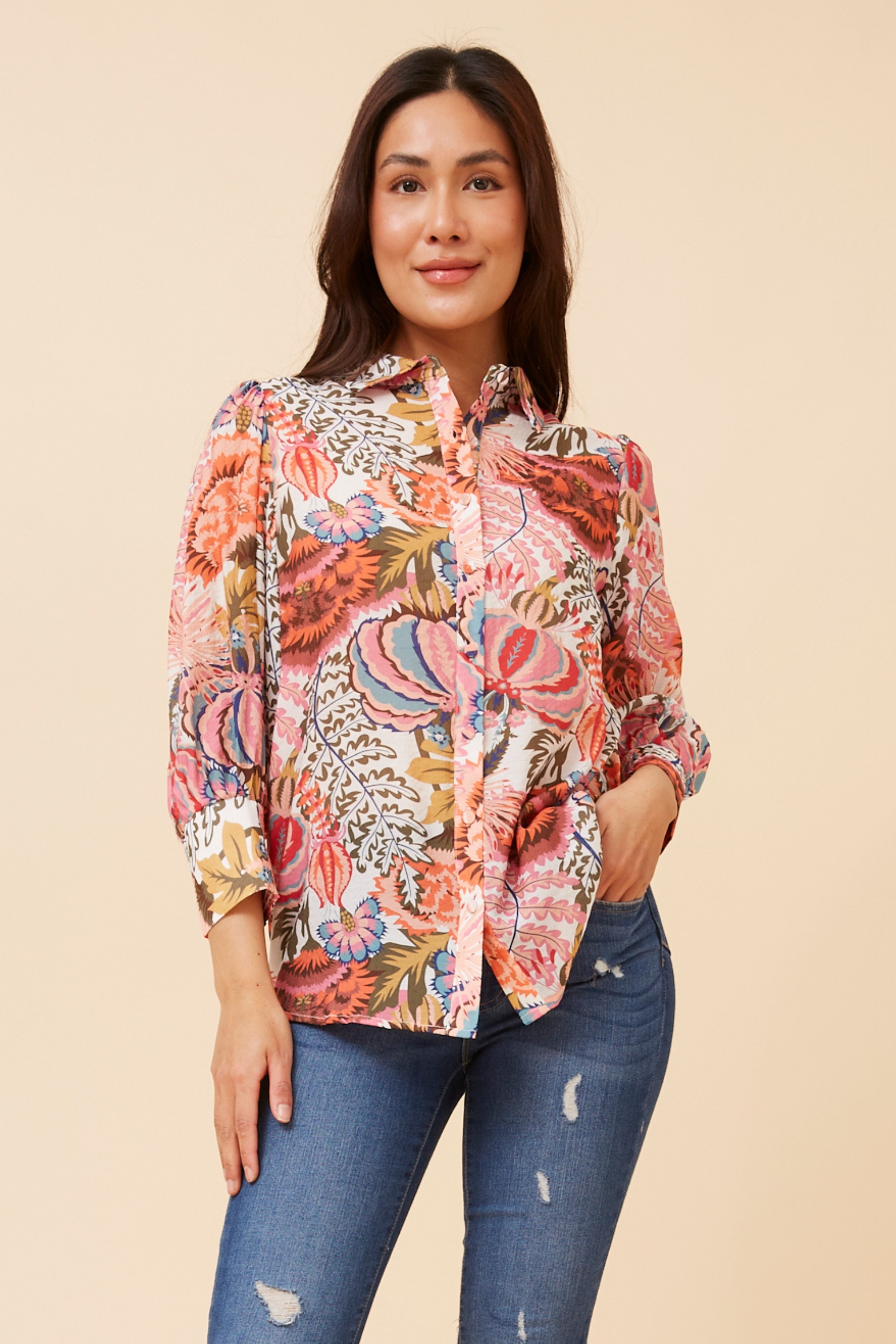 Add a stylish twist to your holiday wardrobe with our Ishla shirt. This top is easy to style with linen pants and sandals for a trendy vacay look.