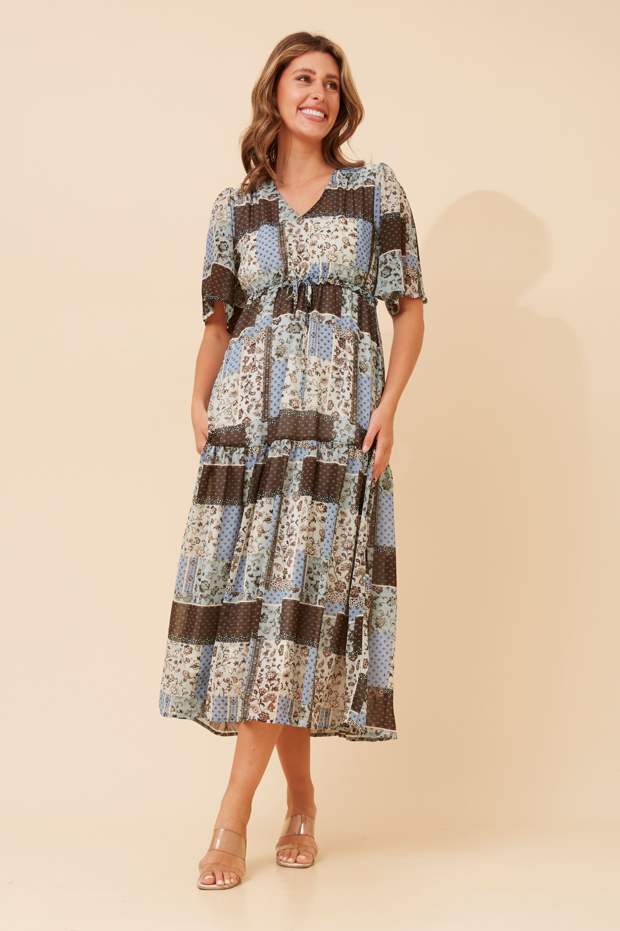IVANA PACHTWORK PRINT MAXI DRESS