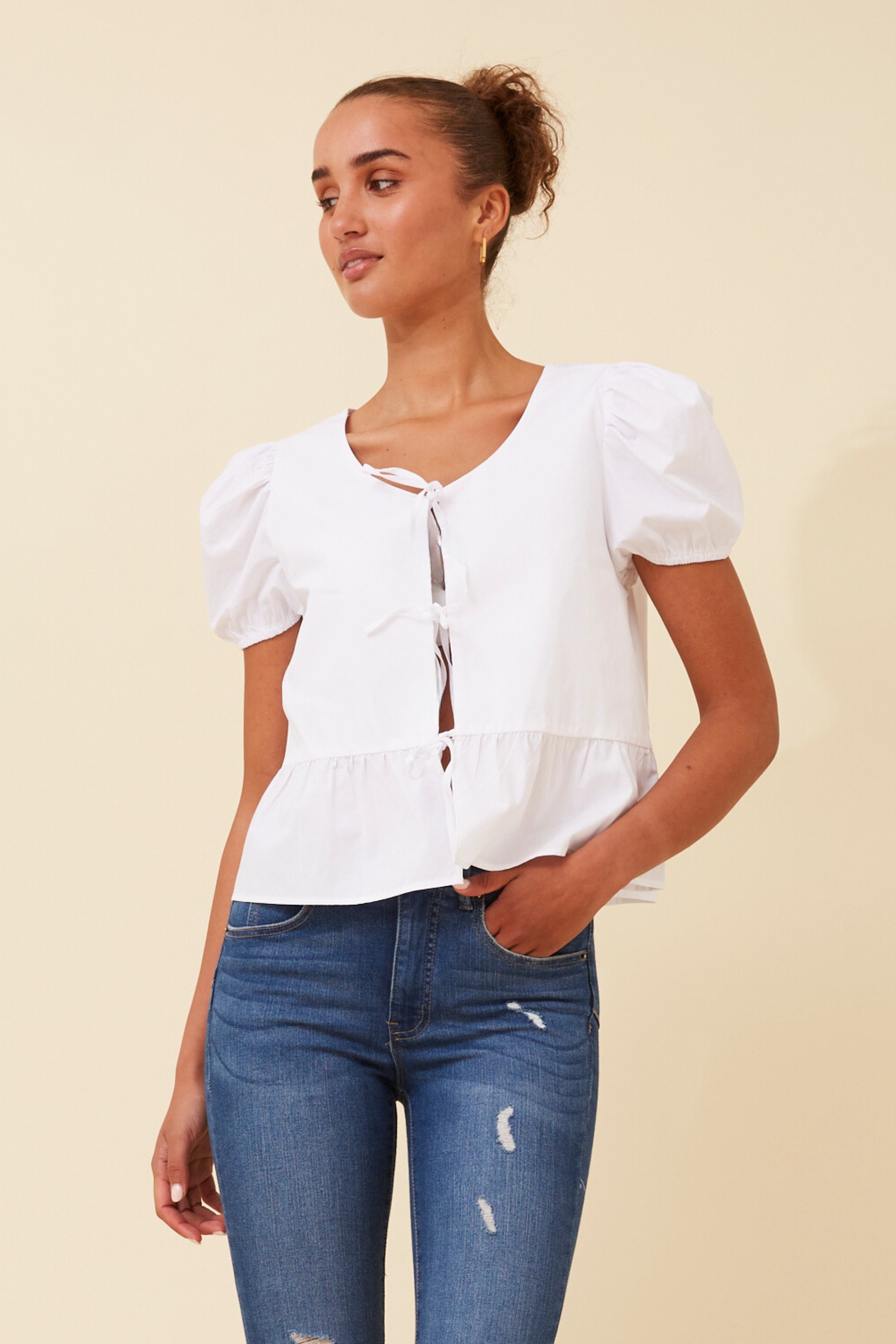 The Khaleesi top is a sweet and playful addition to your wardobe this season! Pair with jeans and sandals for a chic everyday look!