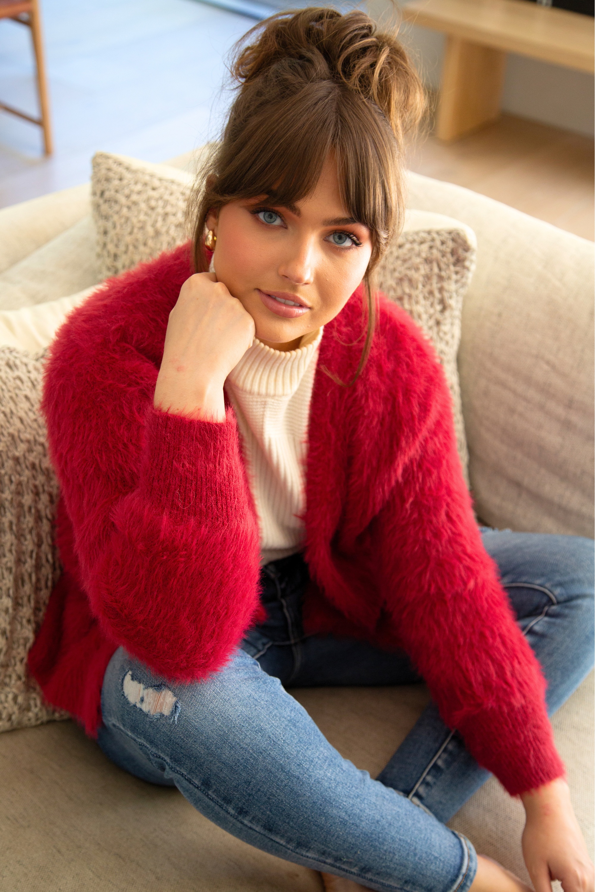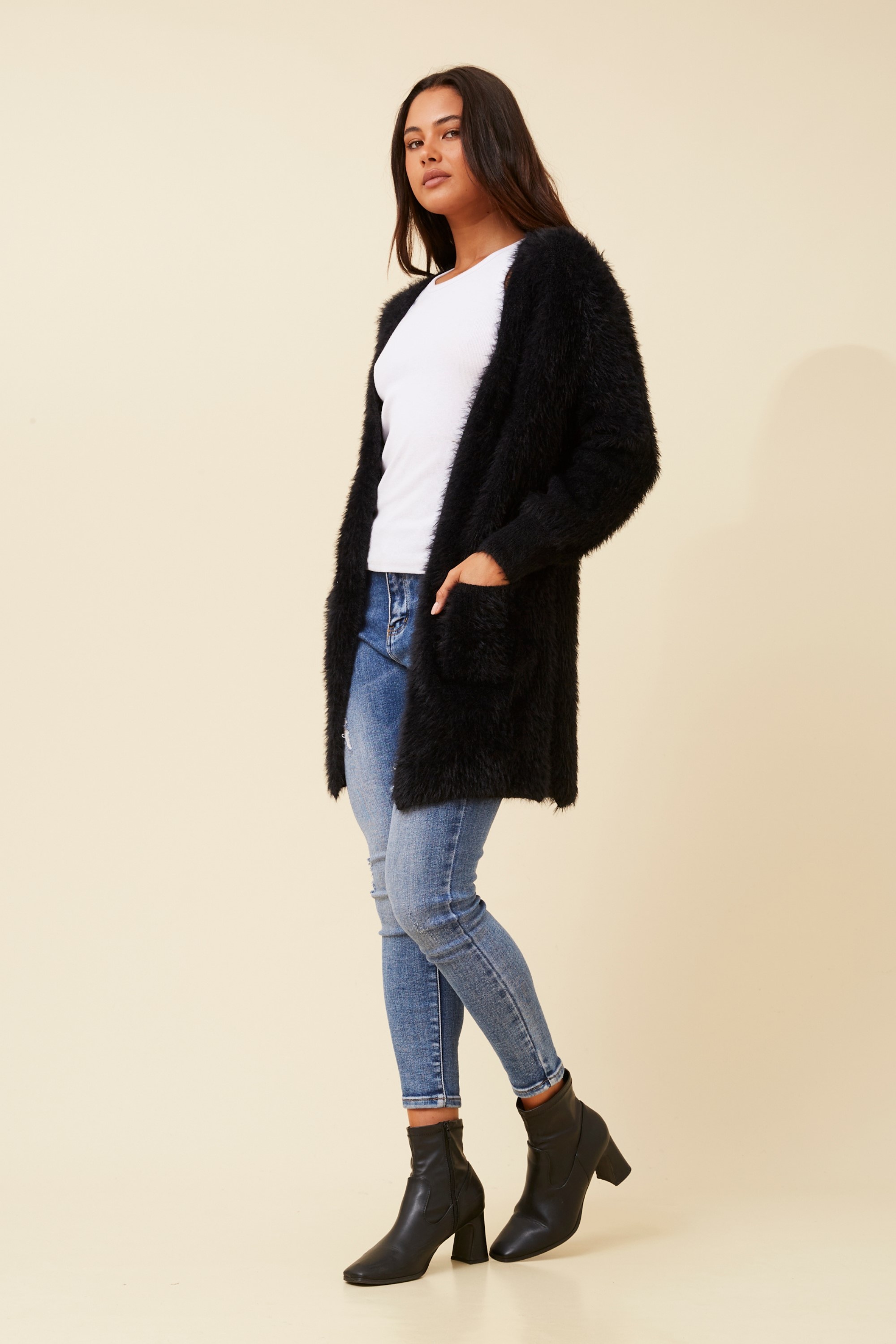 The Leeza cardigan effortlessly combines comfort and style with its soft eyelash yarn and is ideal for easy transeasonal styling. Pair it with your favorite jeans and a basic tee for a trendy day look, or layer it over a dress for an effortless transition from day to night.