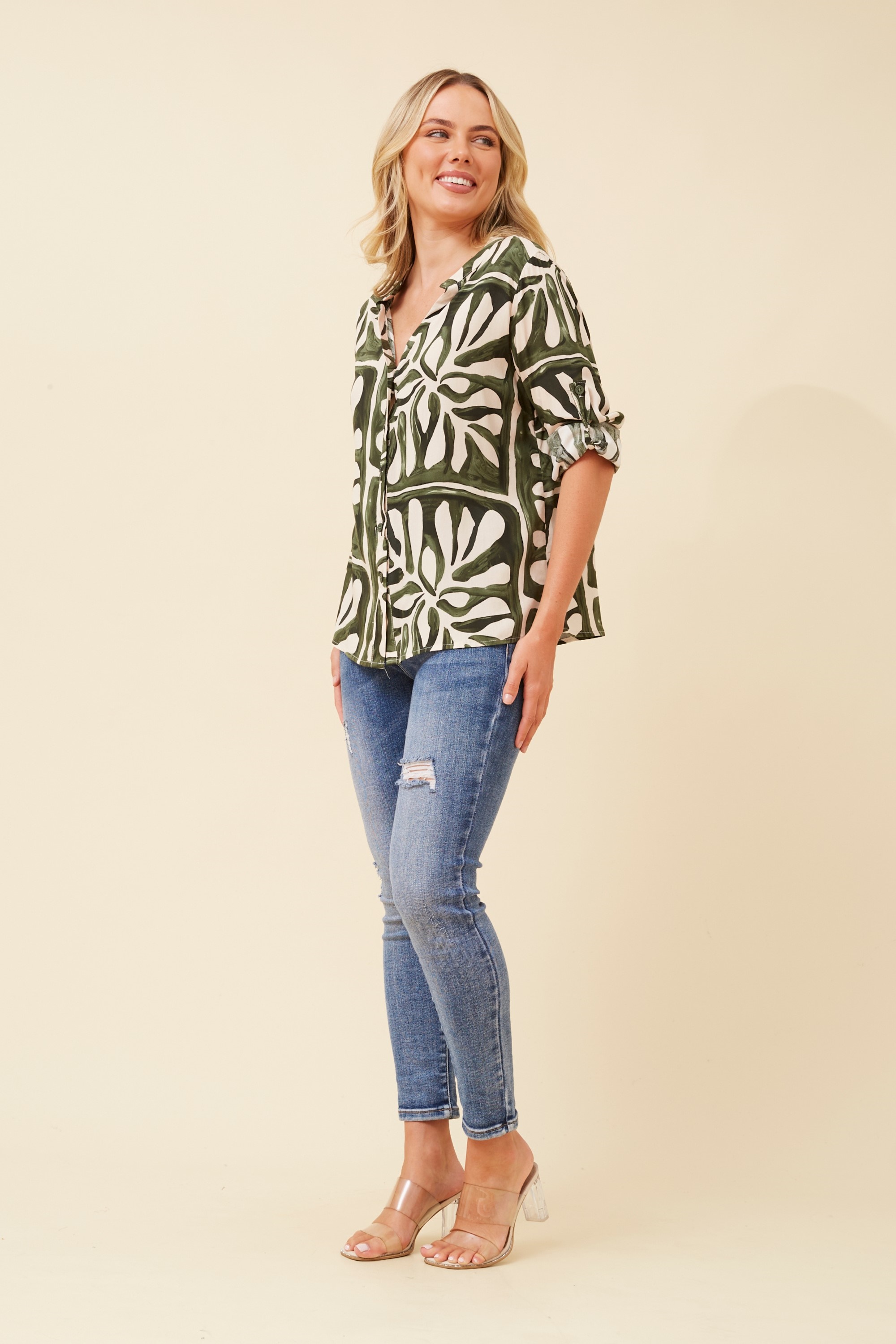 Stand out in style with the Leo shirt. The eye-catching patchwork print adds a bold touch to your everyday look. Perfect for a casual day out or a relaxed weekend vibe, this shirt pairs effortlessly with jeans for a laid-back, stylish outfit.