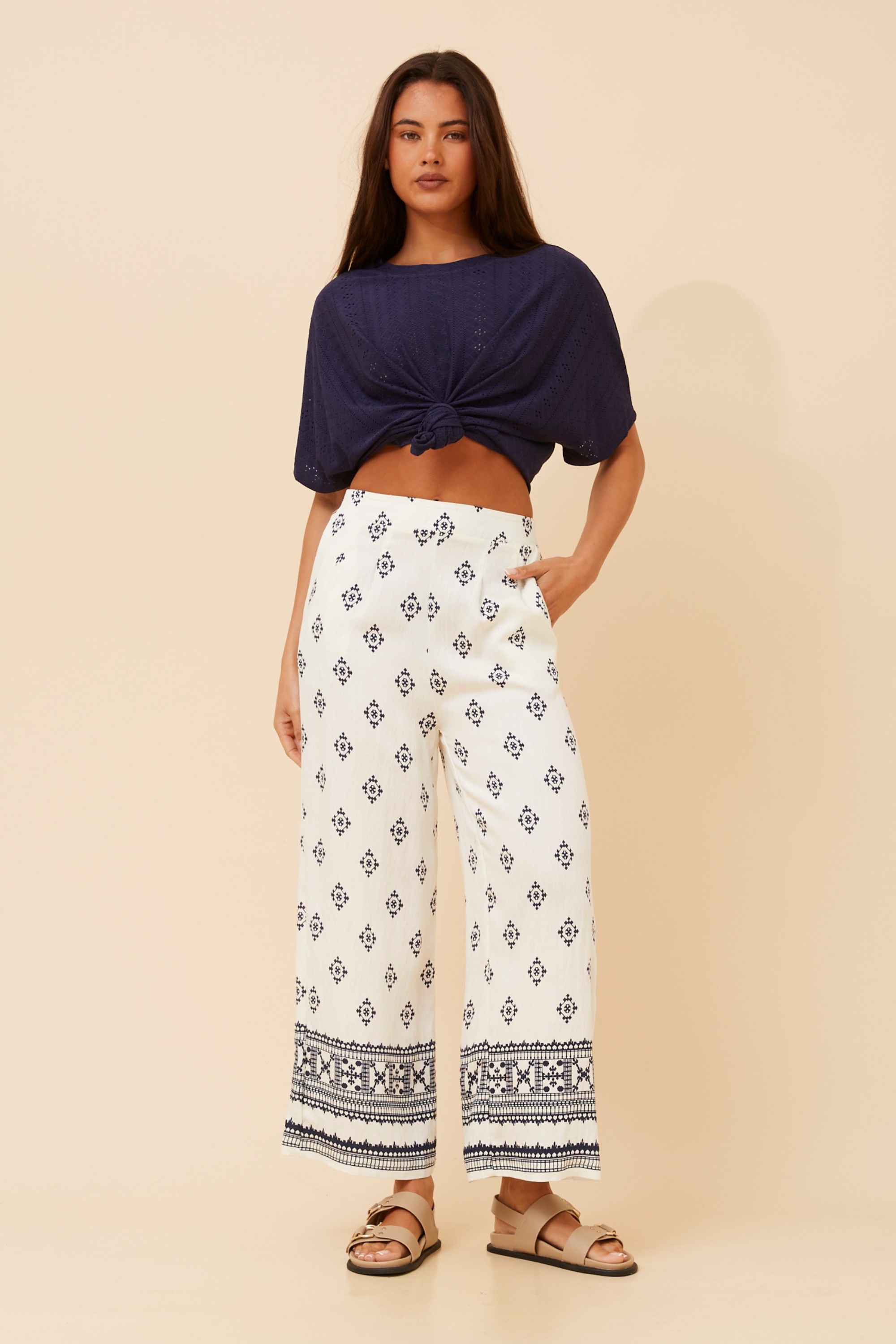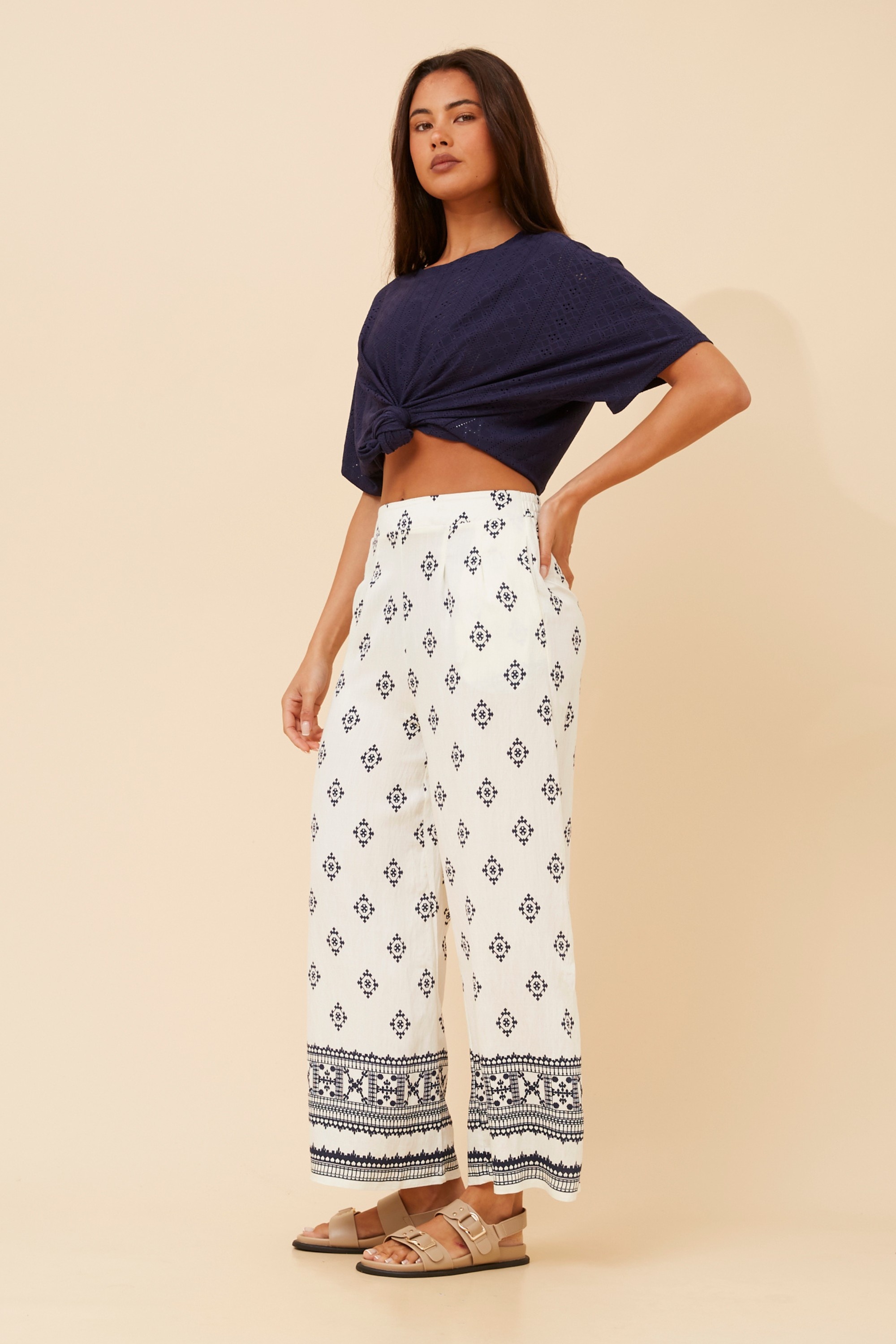 LOXANA BORDER PRINT WIDE LEG PANTS