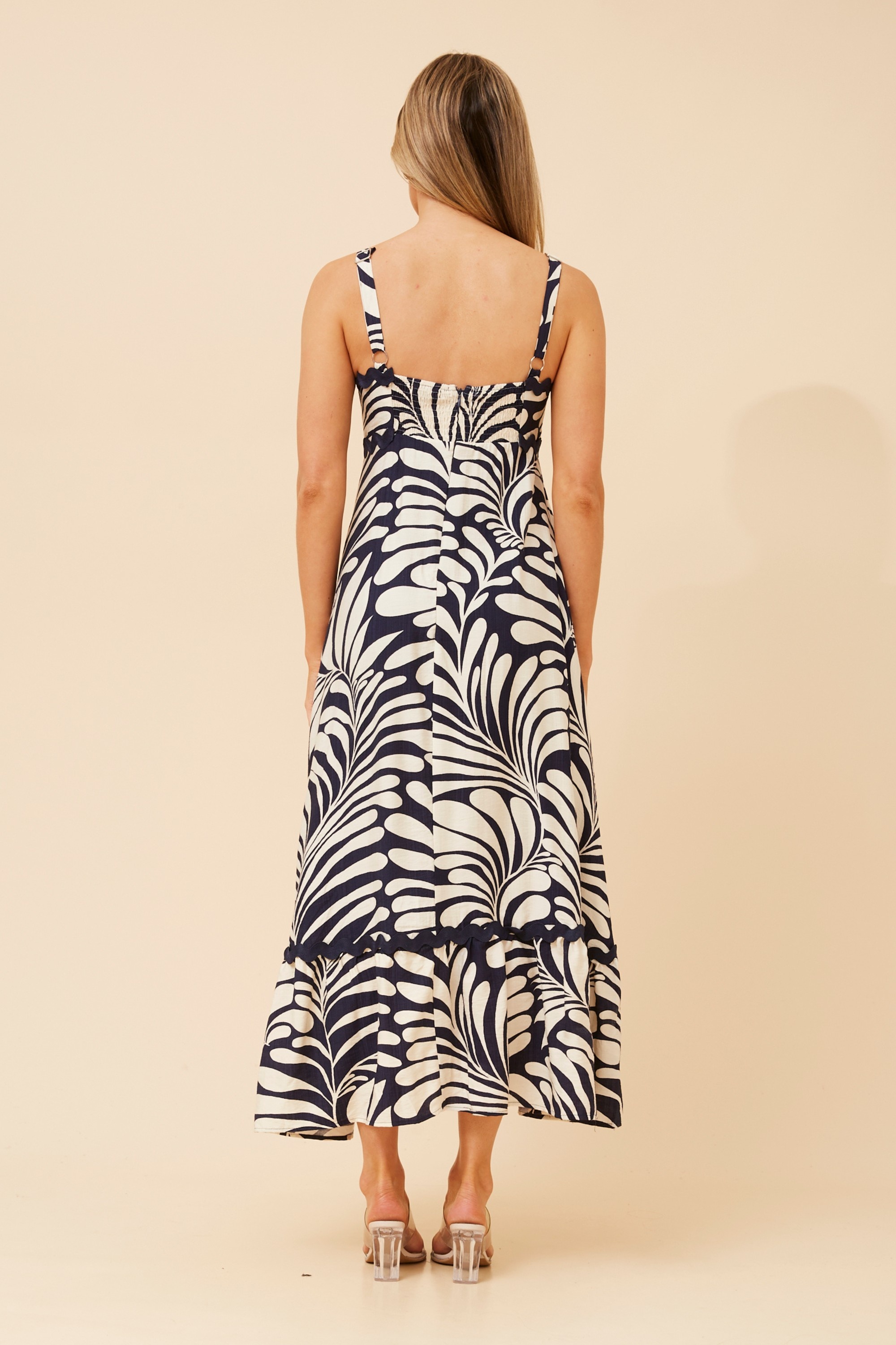 The Makenna Dress is perfect for vacation days, with a square neckline that pairs well with delicate necklaces. Style it with sandals and your favourite sunglasses for an effortlessly chic holiday look.