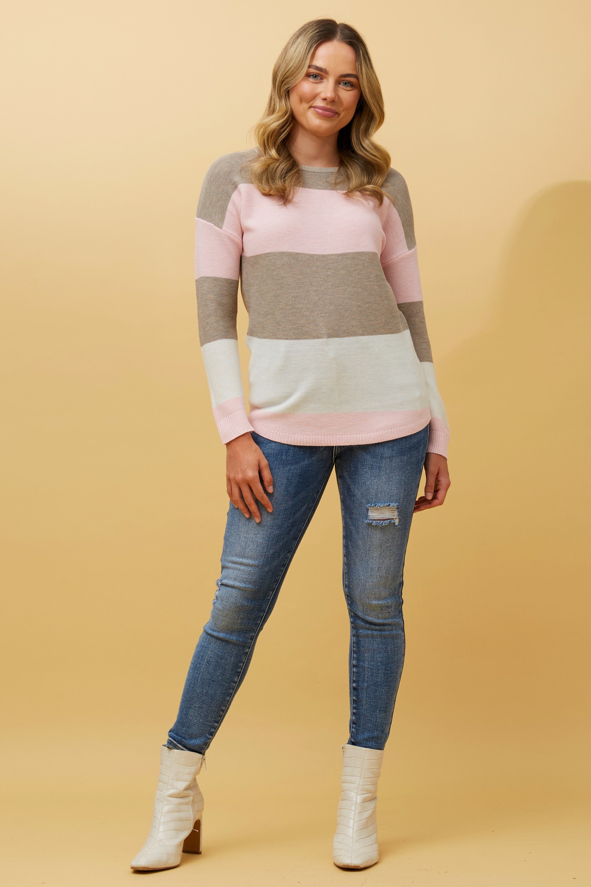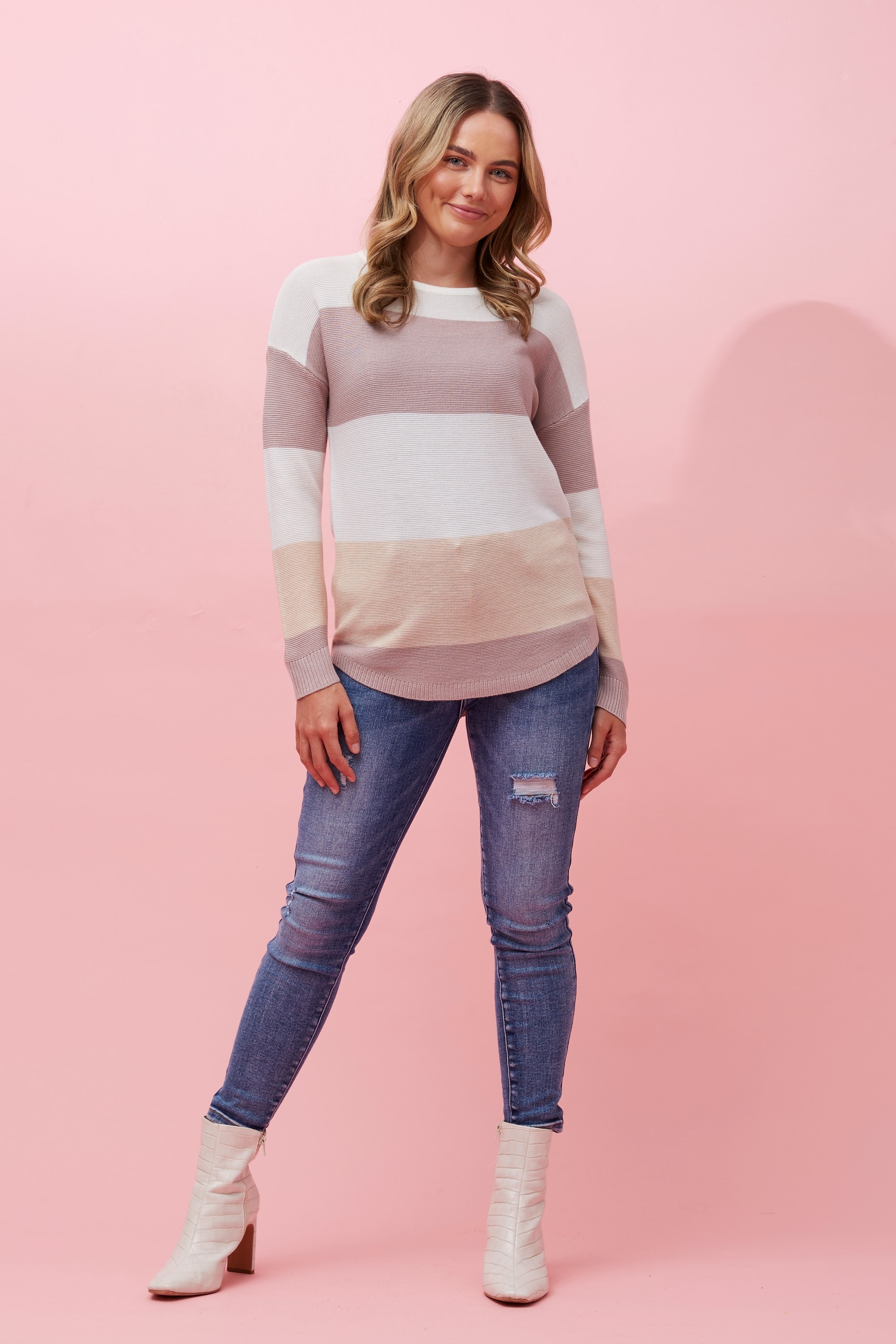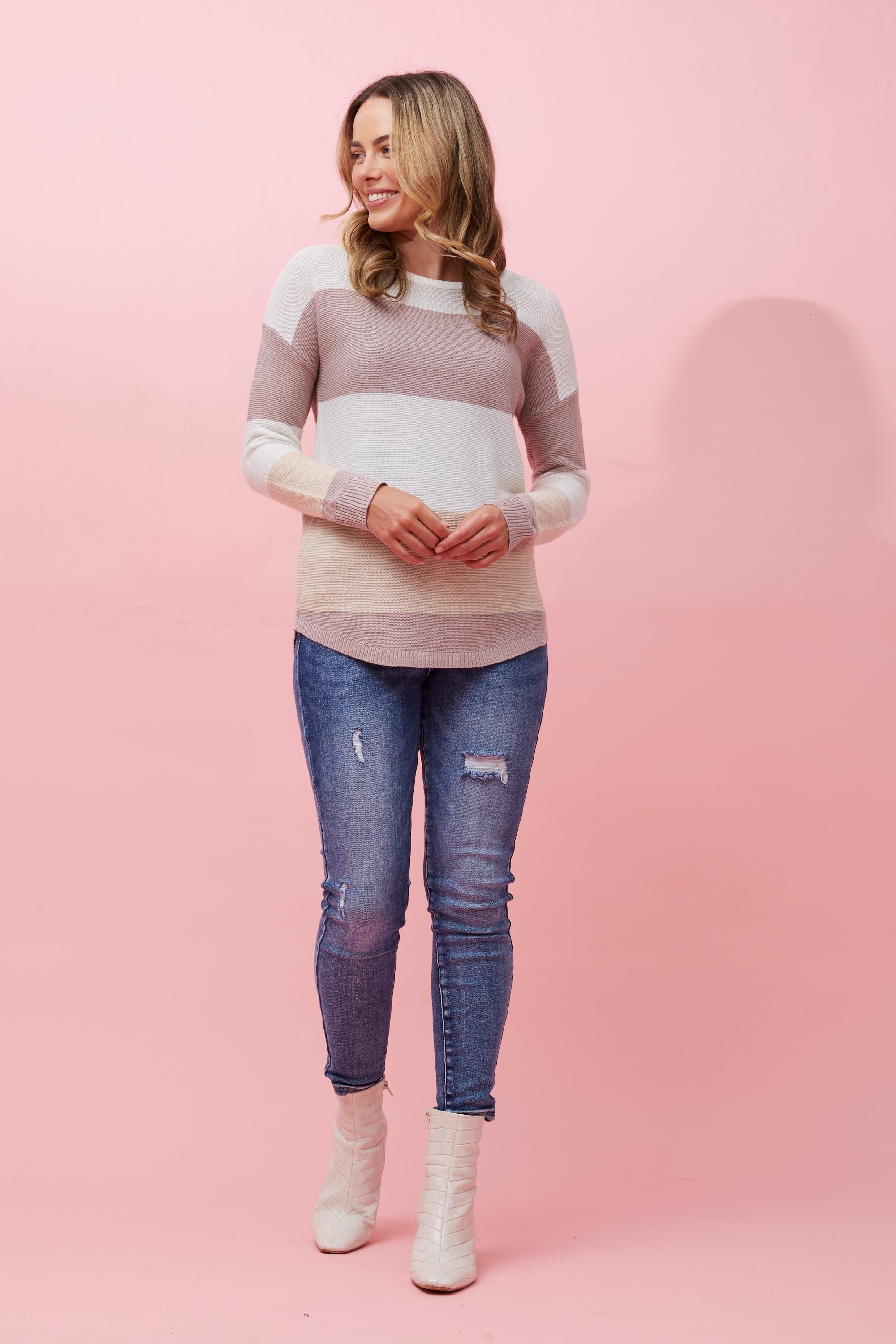 Ollie Knit Jumper is a cozy and trendy addition to your everyday wardrobe. Effortlessly pair with your go-to jeans for a laid-back look or layer it under a jacket and add boots for those cooler days!