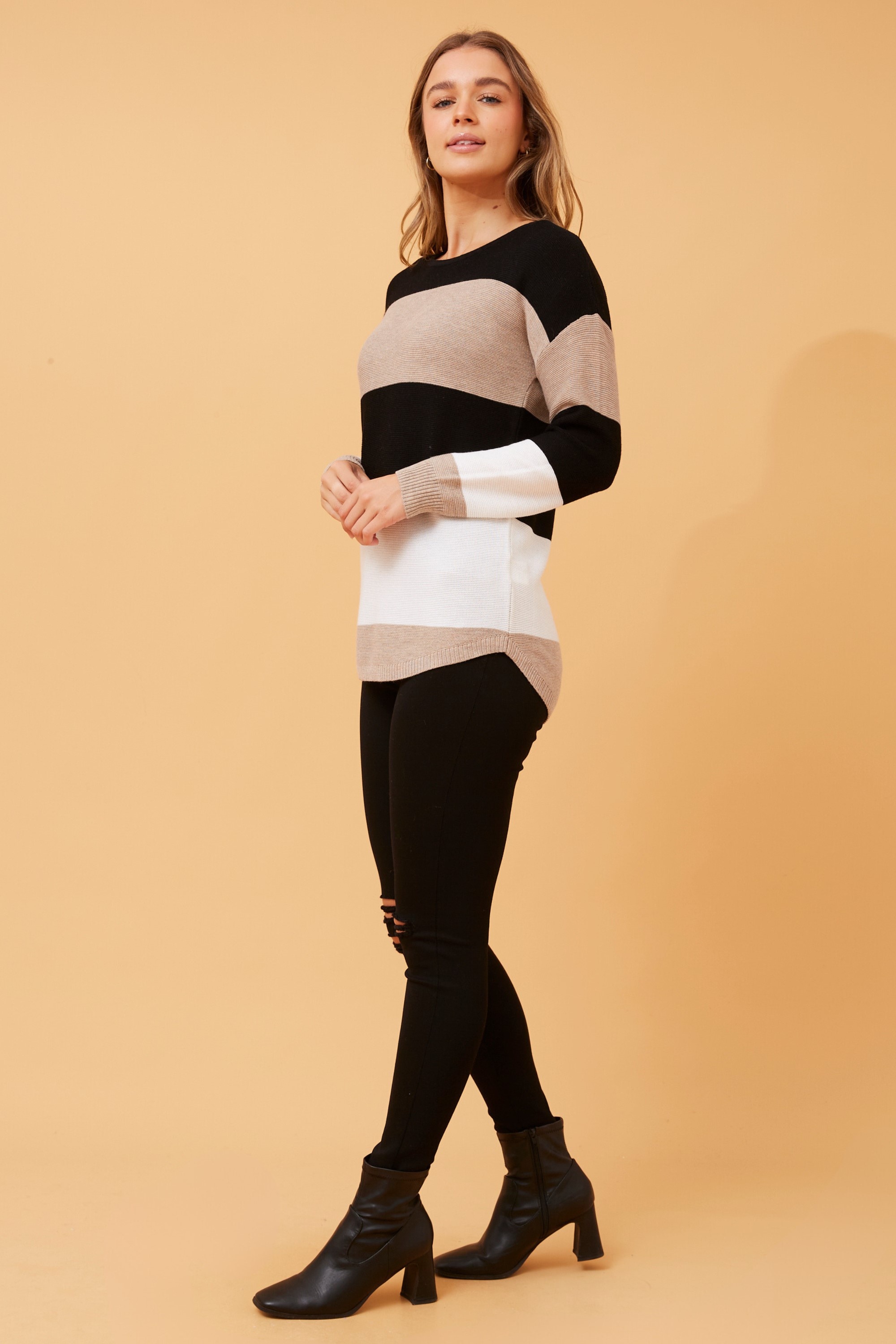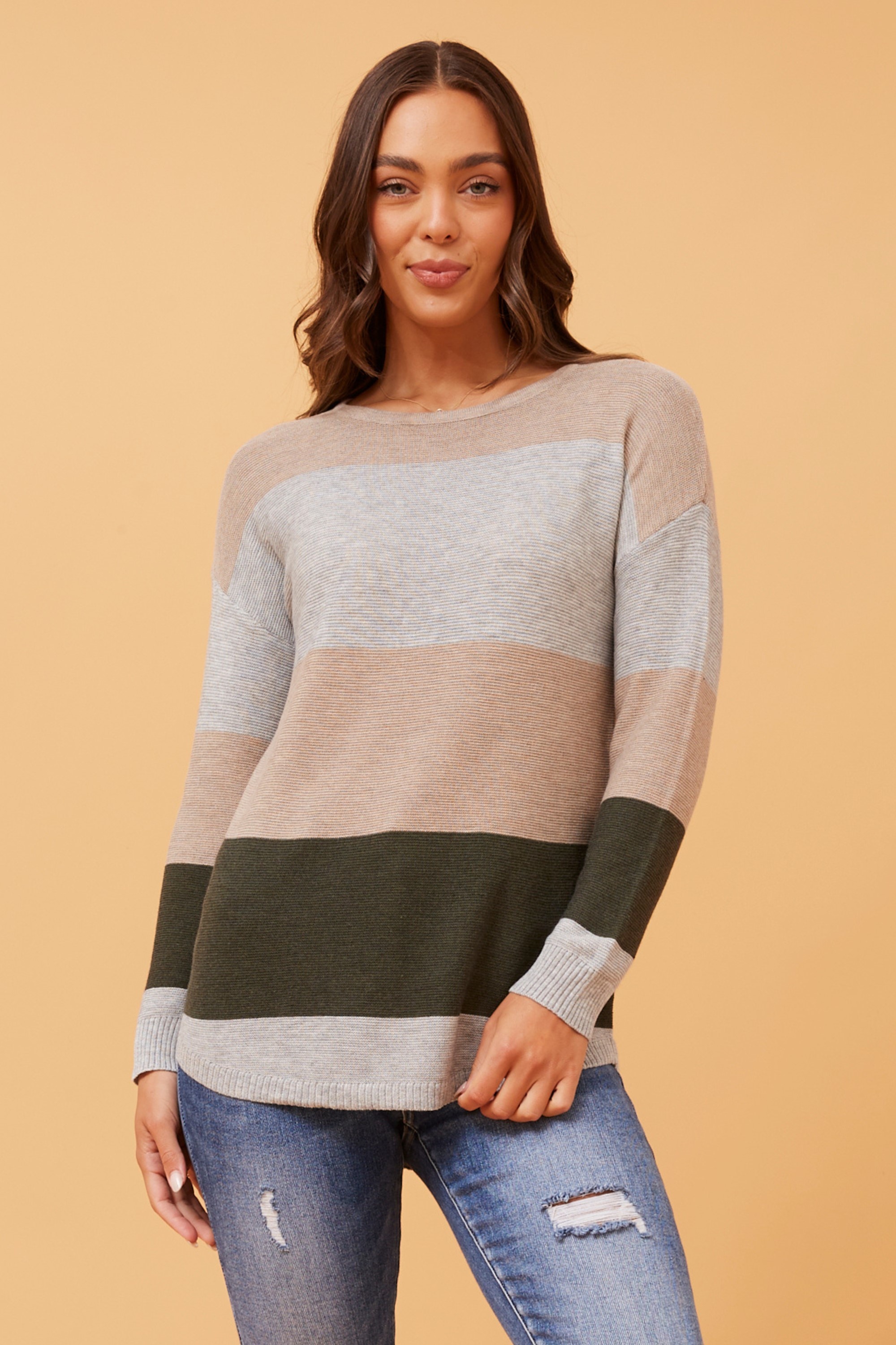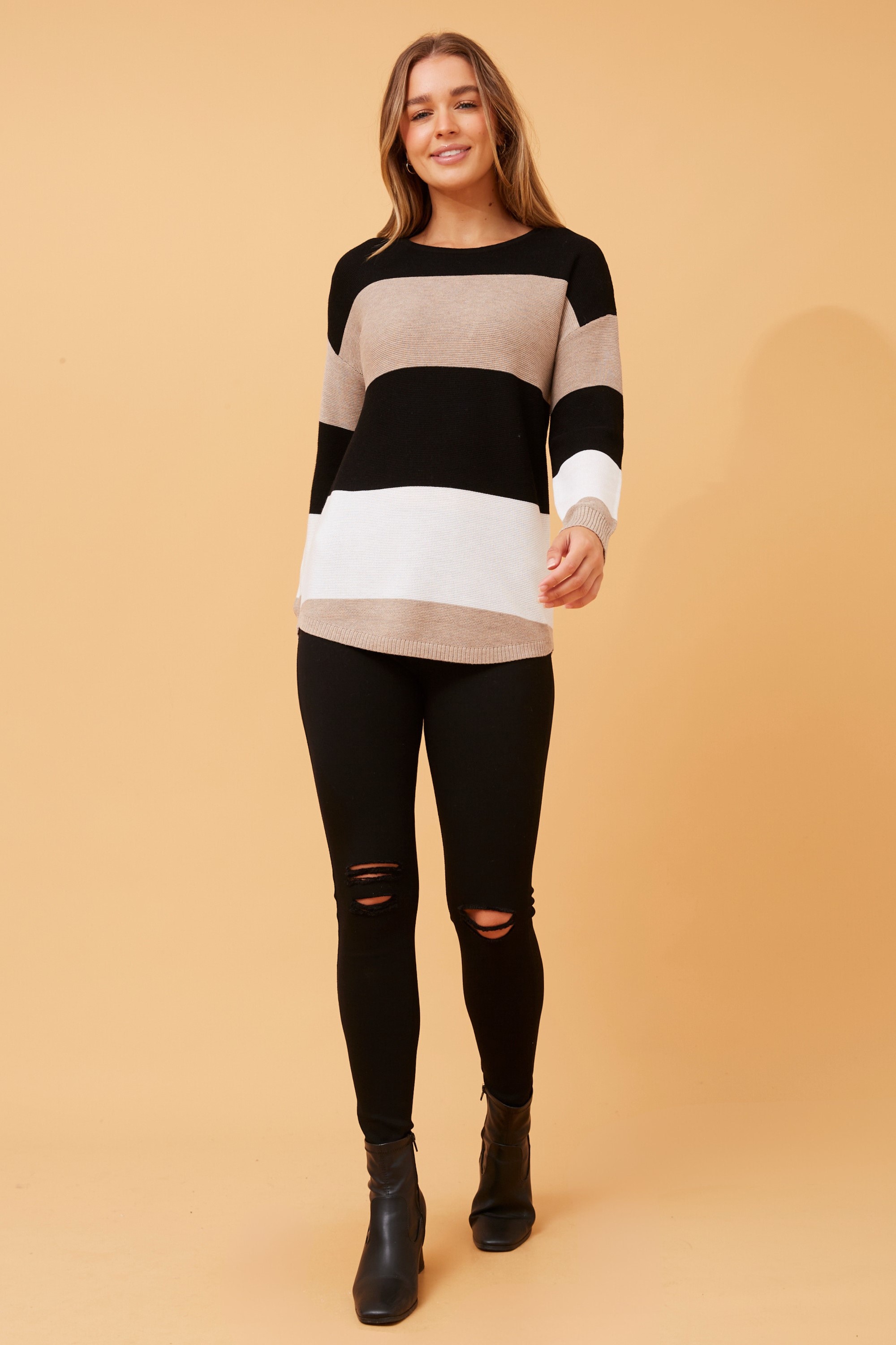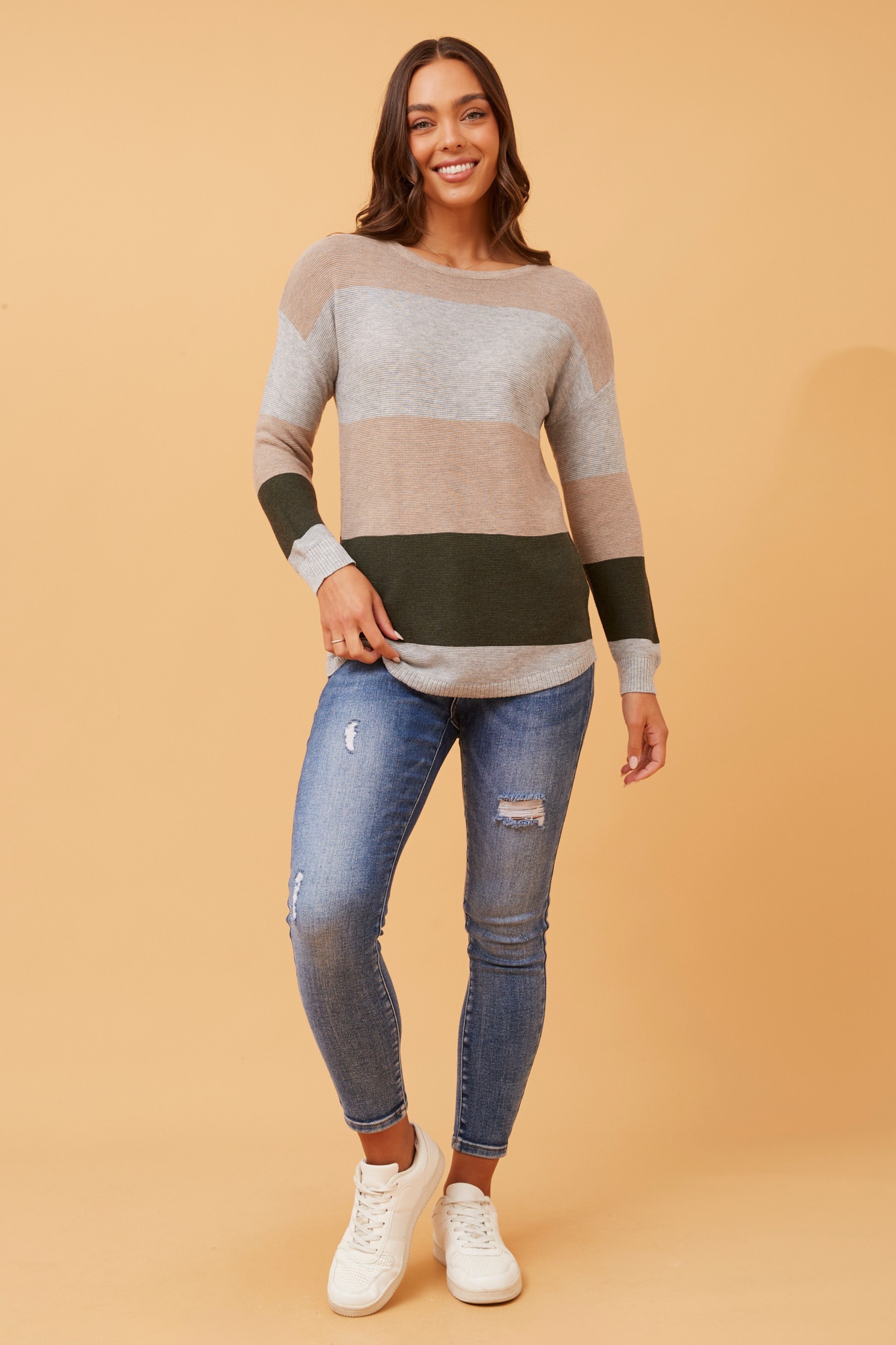 Ollie Knit Jumper is a cozy and trendy addition to your everyday wardrobe. Effortlessly pair with your go-to jeans for a laid-back look or layer it under a jacket and add boots for those cooler days!