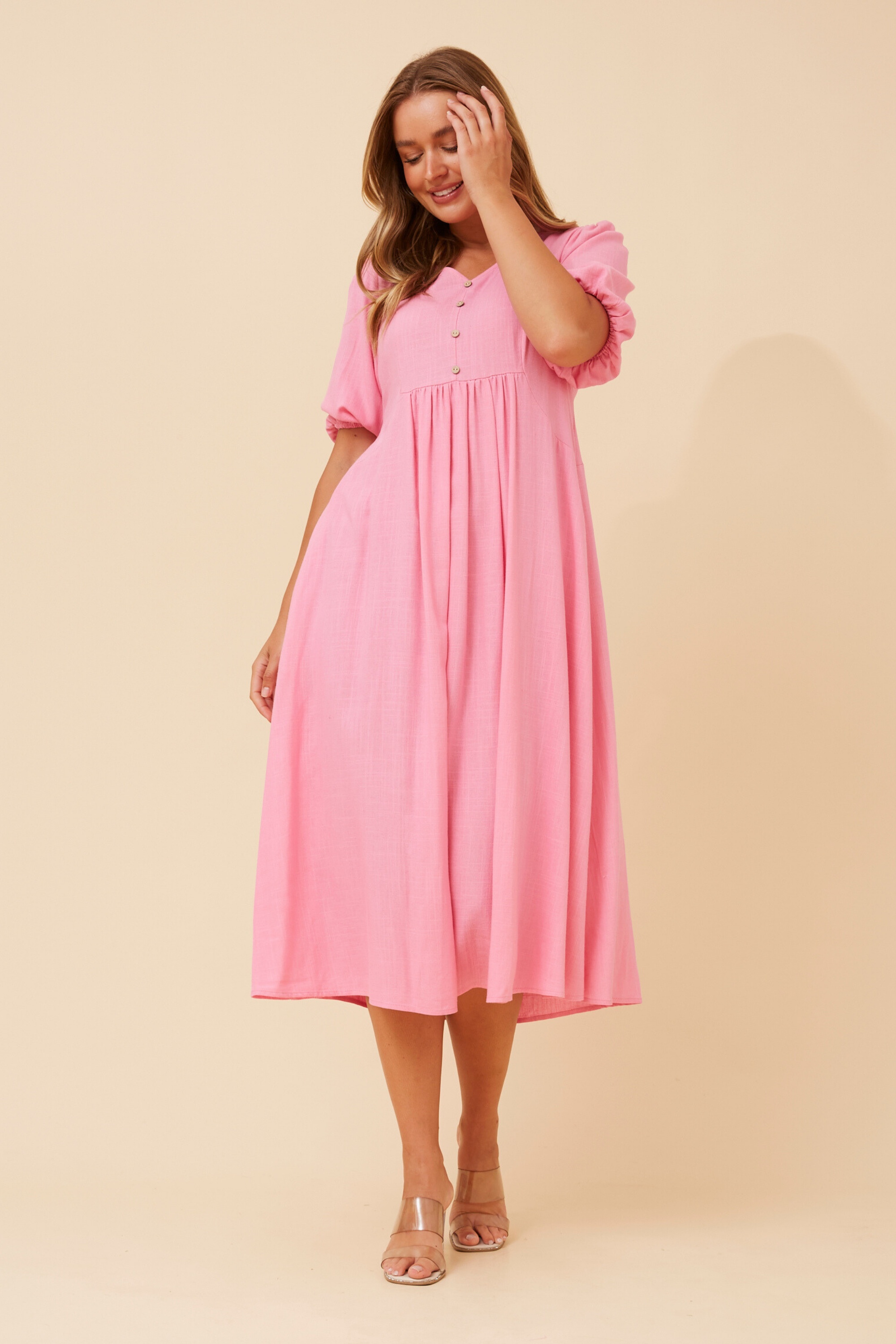 Embrace effortless style with the Orazia Midi Dress. Flowing and relaxed perfect for sunny days or weekend getaways, pair with heels for a finish look.