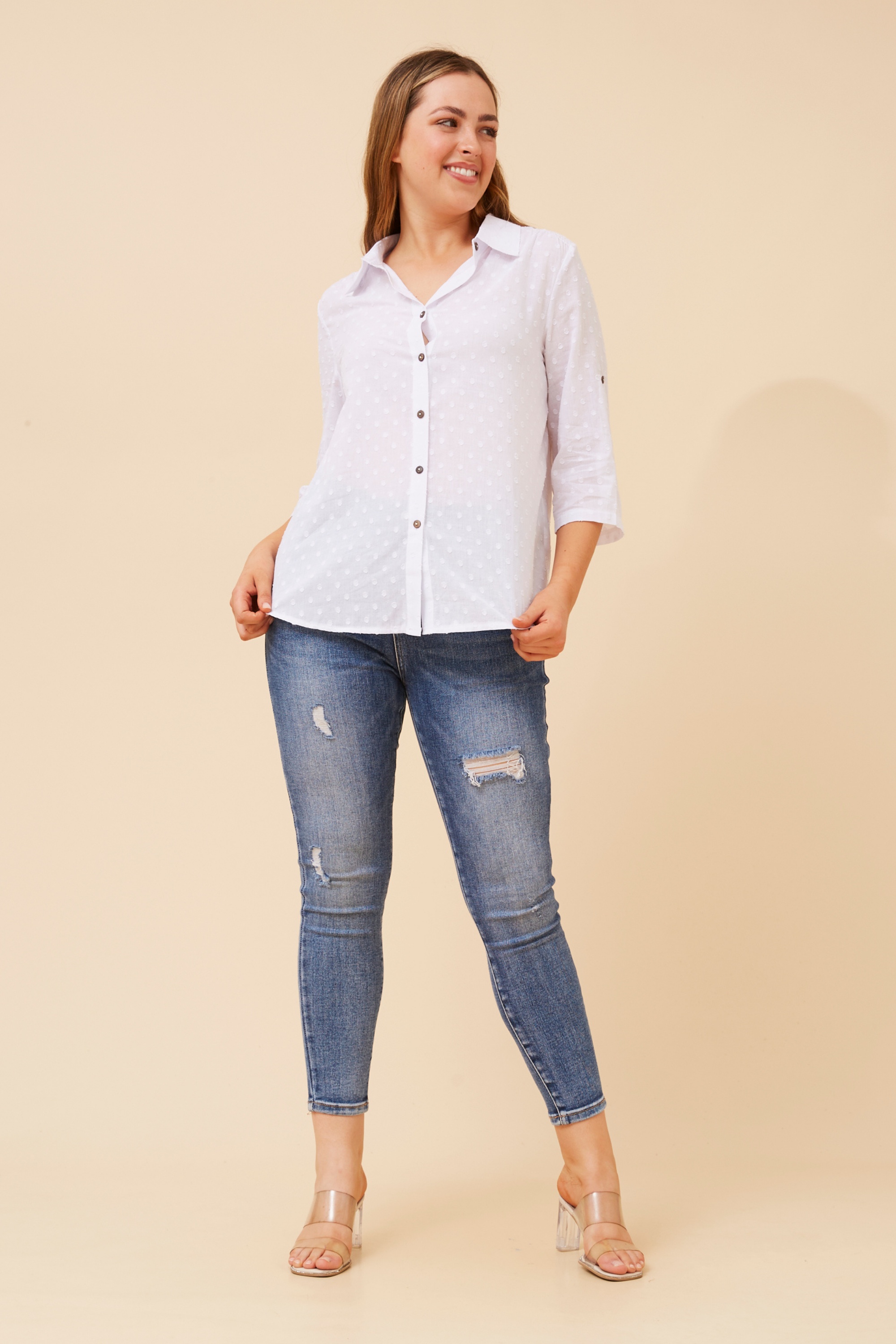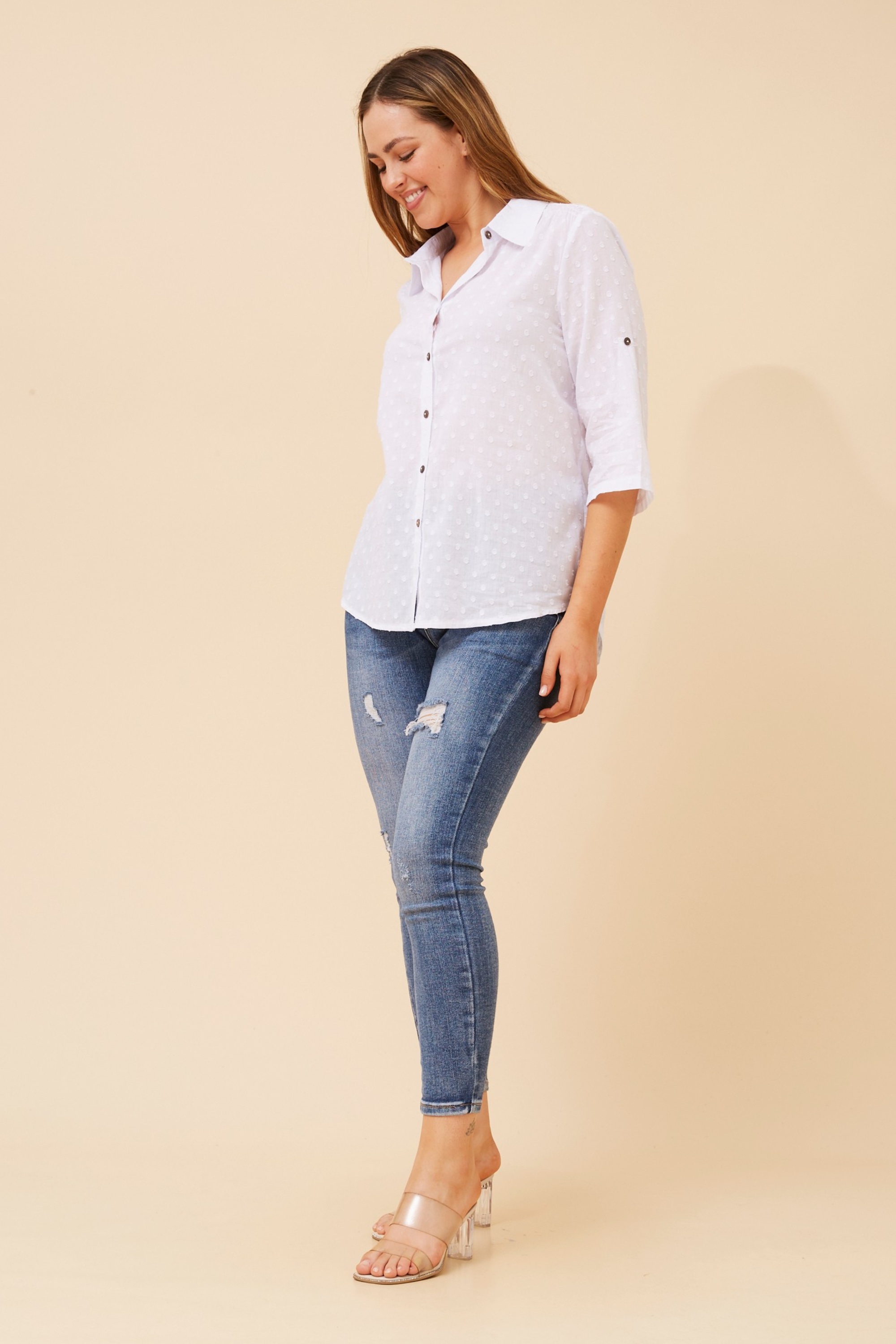 The Peppi Shirt is relaxed, perfect for casual days or weekend errands. Its breezy fit makes it a go-to for everyday wear. Pair it with jeans and flats for a simple look, or tuck it into wide-leg pants with minimal accessories for a slightly polished vibe.