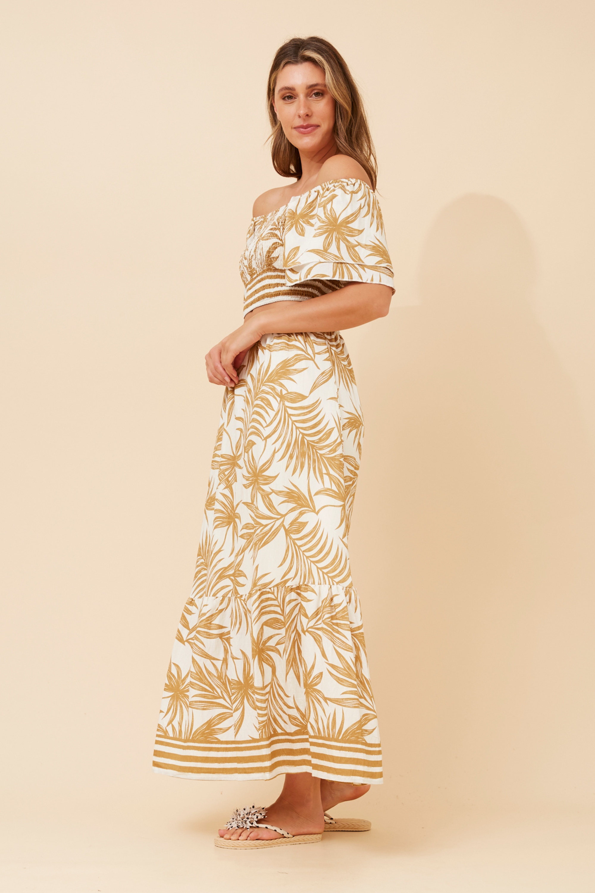 Elevate your holiday wardrobe with the Rielle Set. This playful skirt and top combo can be worn off-shoulder for a relaxed, sun-ready vibe. Perfect for beach days, resort wear, or casual summer outings, pair with sandals or espadrilles to complete the look.