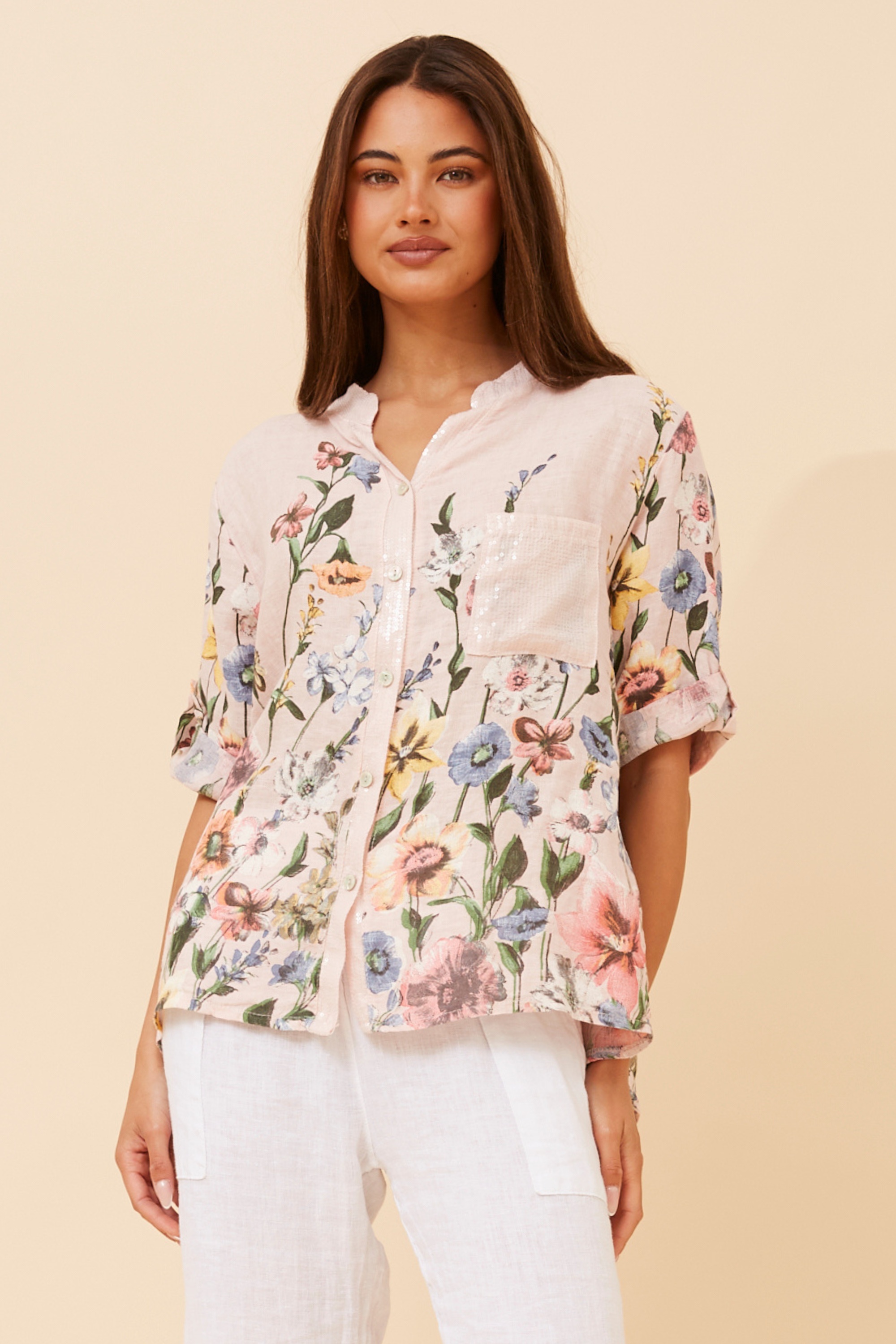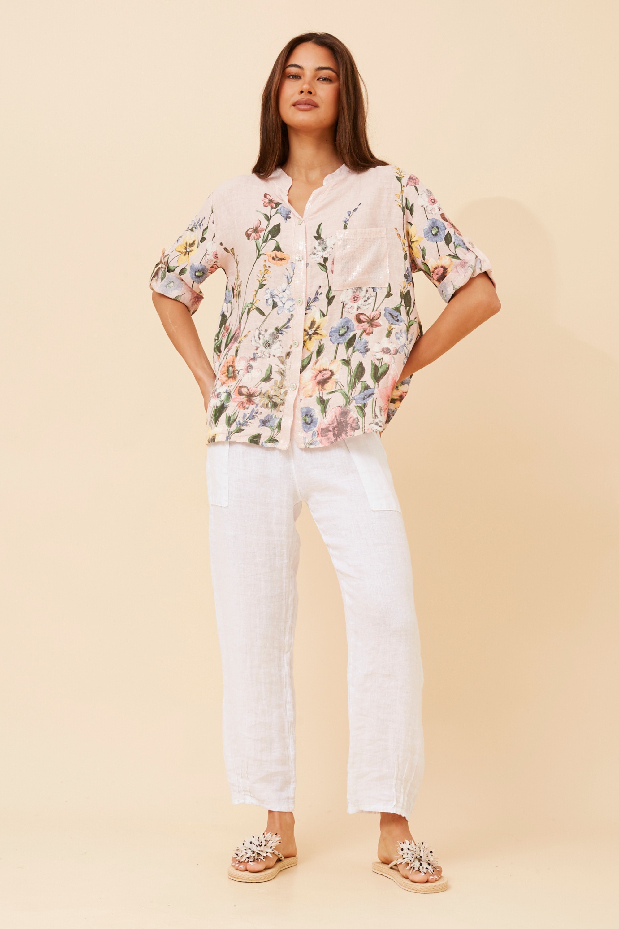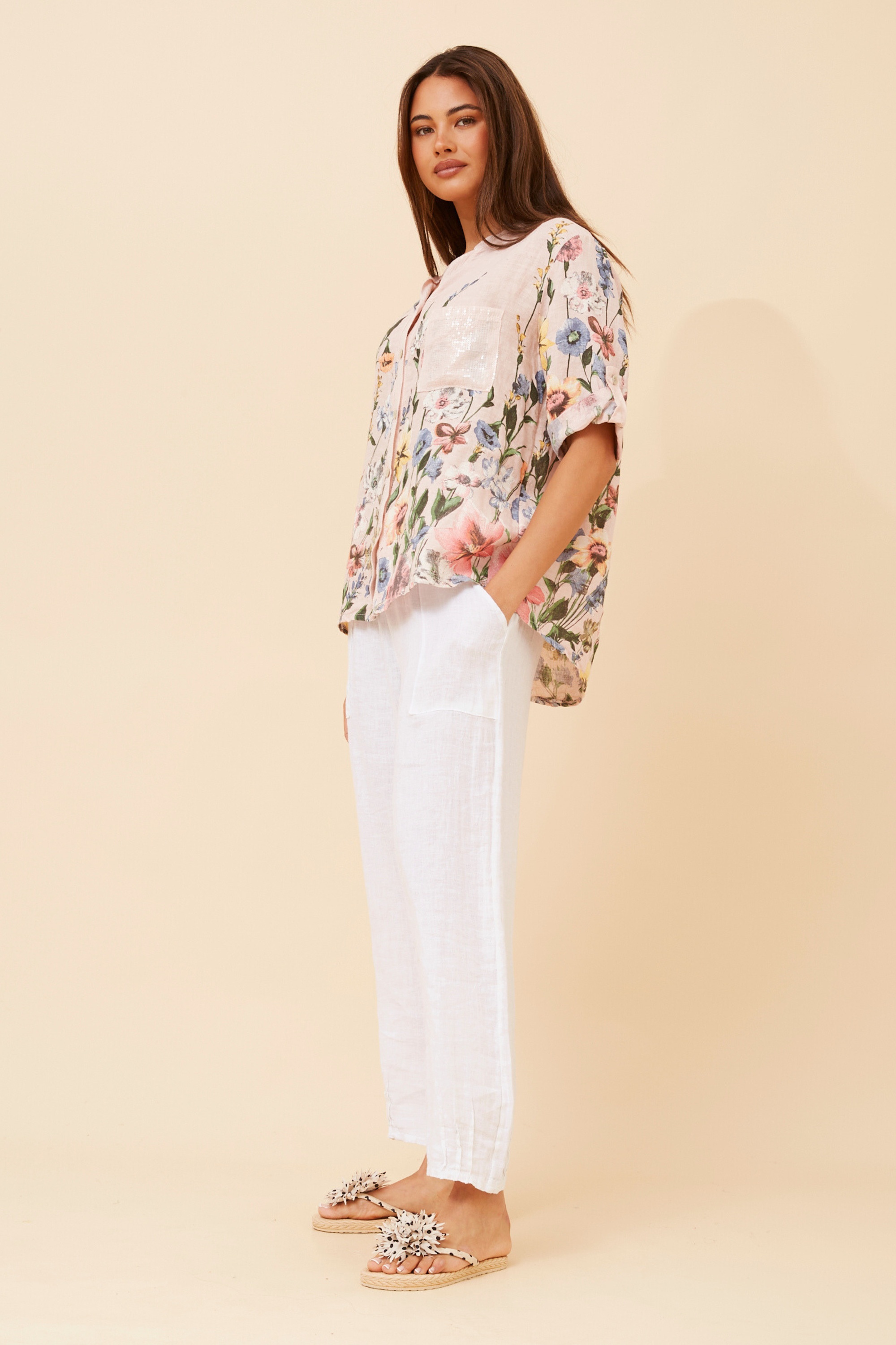 ROSALVA FLORAL PRINT LINEN SHIRT