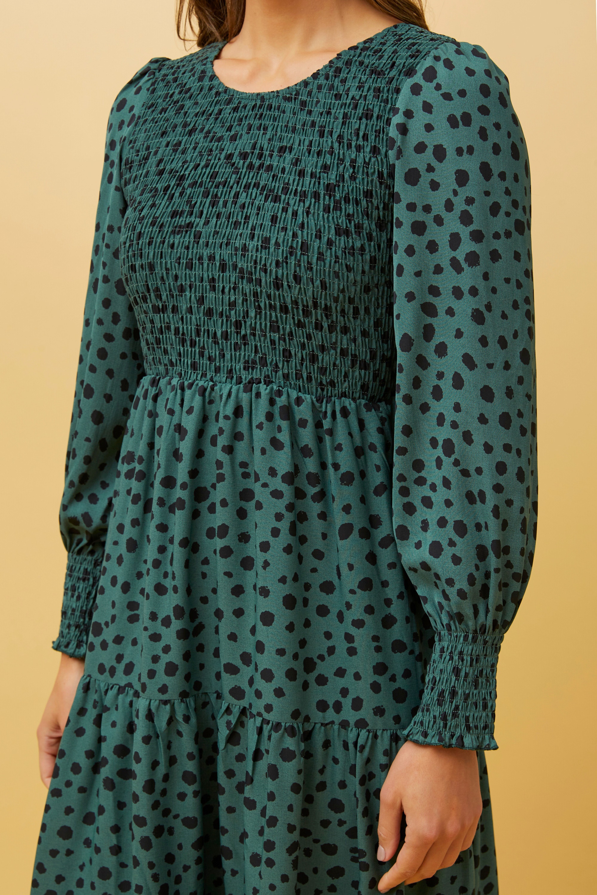 Transform your look from day to night in this stunning shirred dress. Pair it up with sneakers and a crossbody for a soccer mum vibe, alternatively, wear with heels or boots in the evening!
