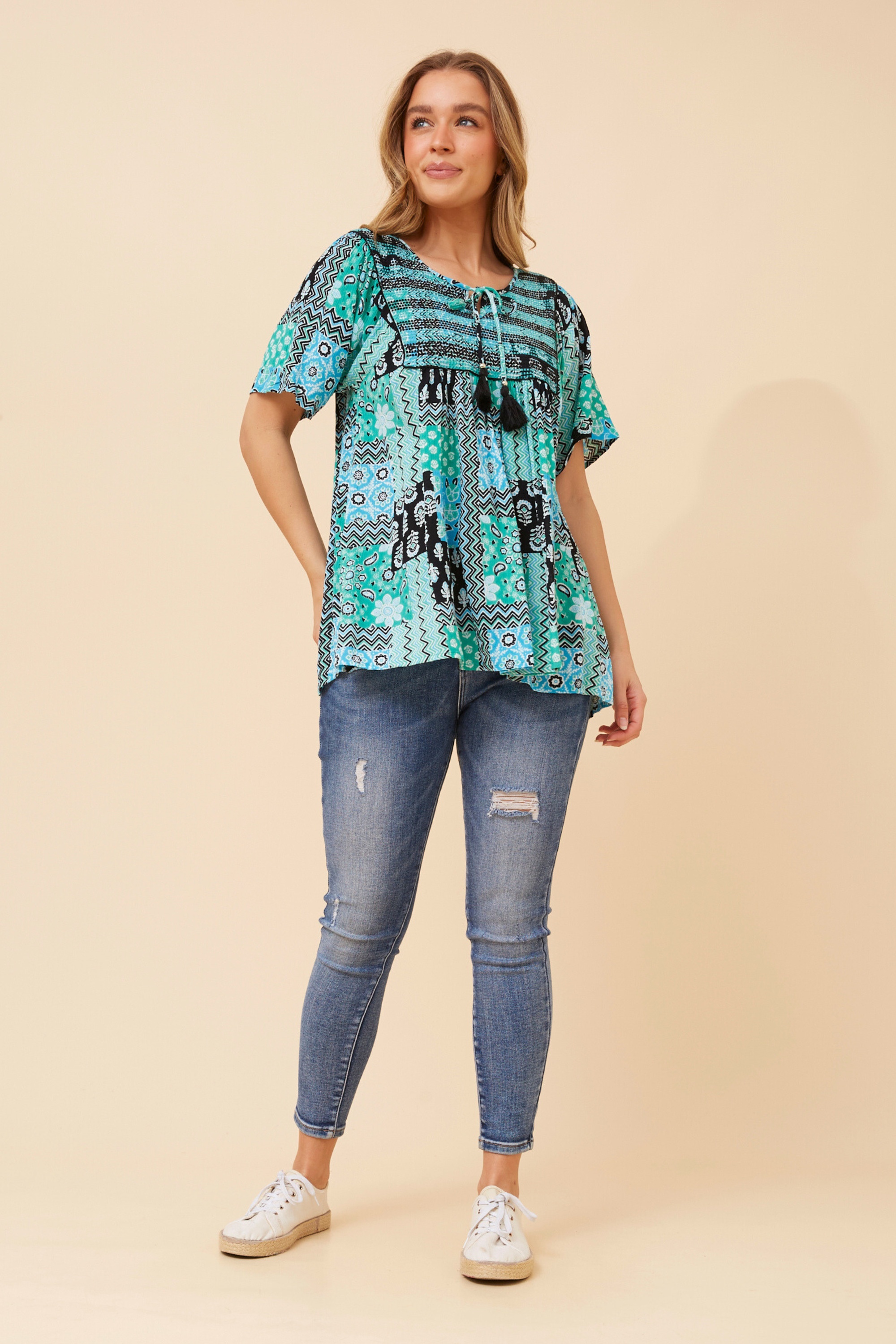 VIMALA PATCHWORK PRINT TOP