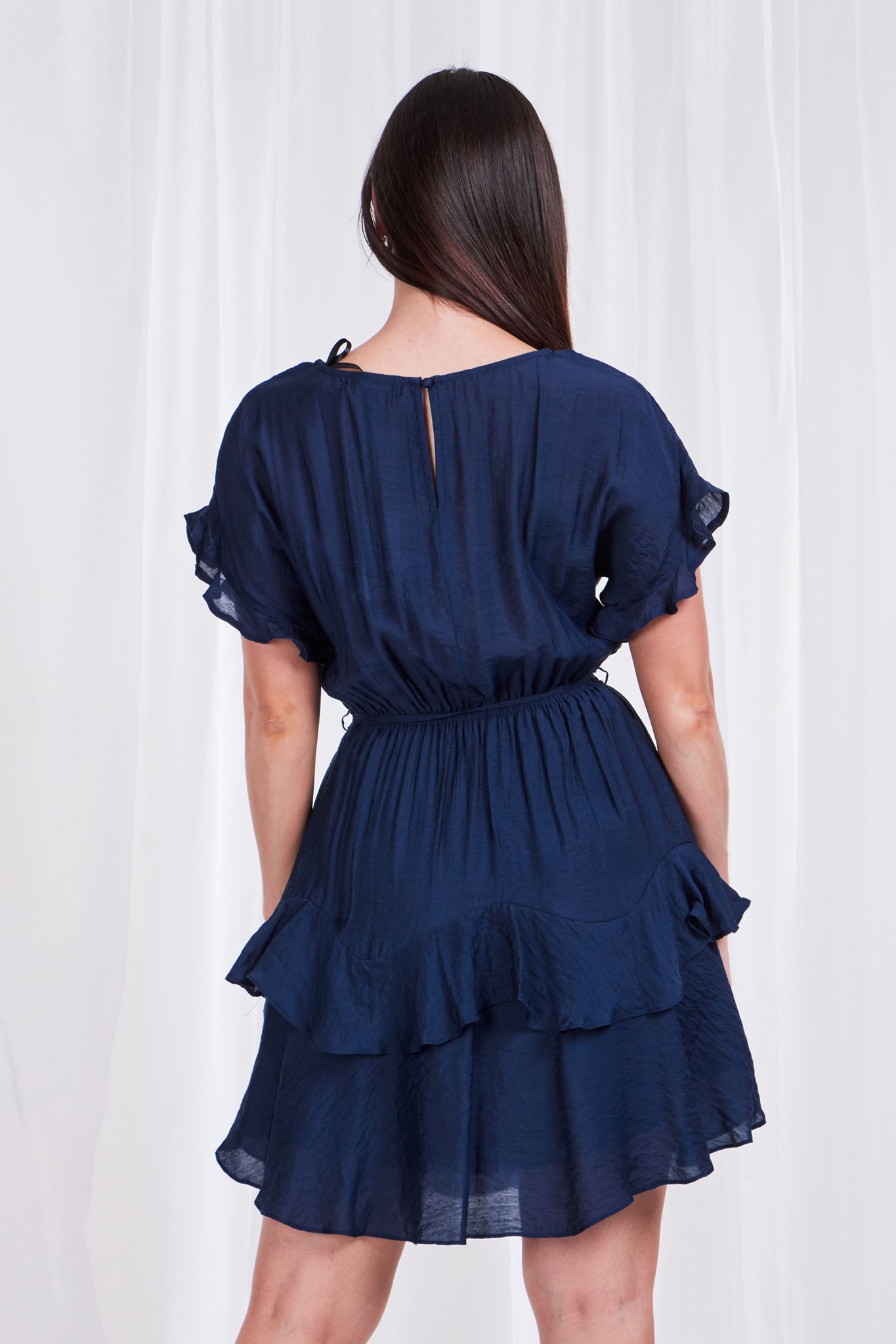 Achieve a comfortable stylish look with this frill sleeve dress. Features a round neck, a self waist tie and relaxed fit. Team with sandals for a chic all day look.- Round neckline