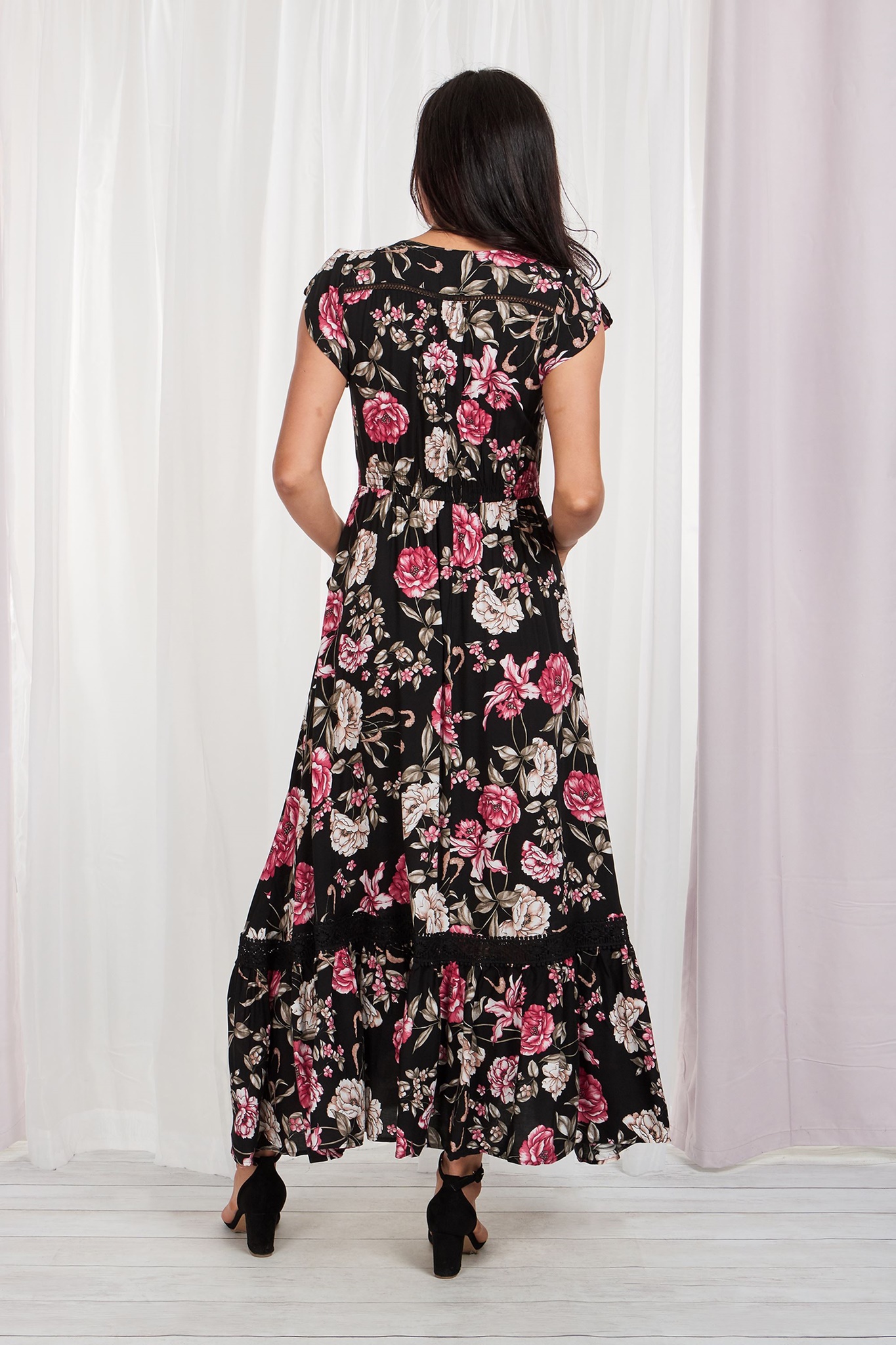 A relaxed yet refined dress designed with a flattering V- neckline with front buttons and a fit and flare silhouette. Elevated with an all over floral print, this delicately frill style is endlessly comfortable. Team with your favourite sandals for a casual yet elegant weekend look.- V-neckline