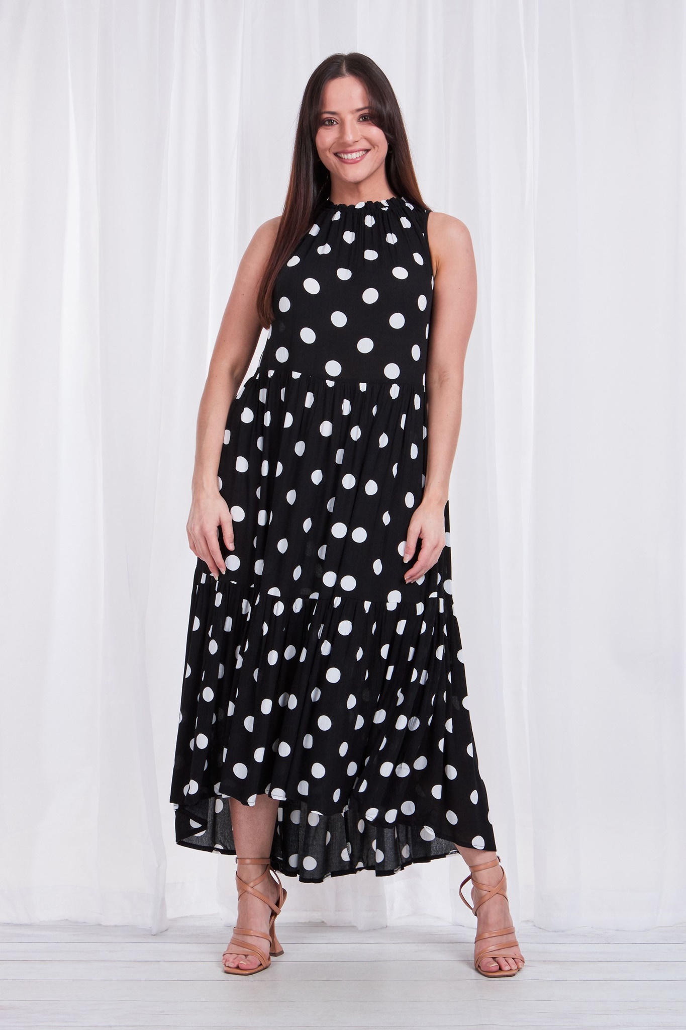 Every woman needs a tiered midi dress in their wardrobe and this polka dot tiered midi dress is a must have. Featuring a tiered body & relaxed fit there is nothing not to love. Throw it on for a day out with the girls and pair it with sneakers for everyday wear.- Loose in fit